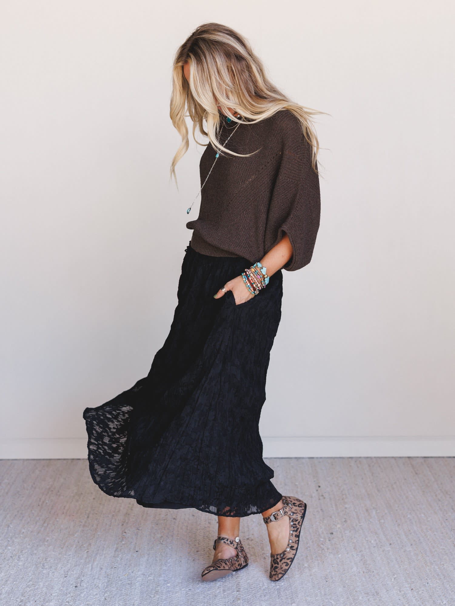 Soft, flowy, and kissed with texture — the Coyote Bloom Floral Maxi Skirt is your new go-to for effortlessly dreamy days. Whether you're chasing sunbeams or wandering weekend markets, this piece moves with you in all the right ways.