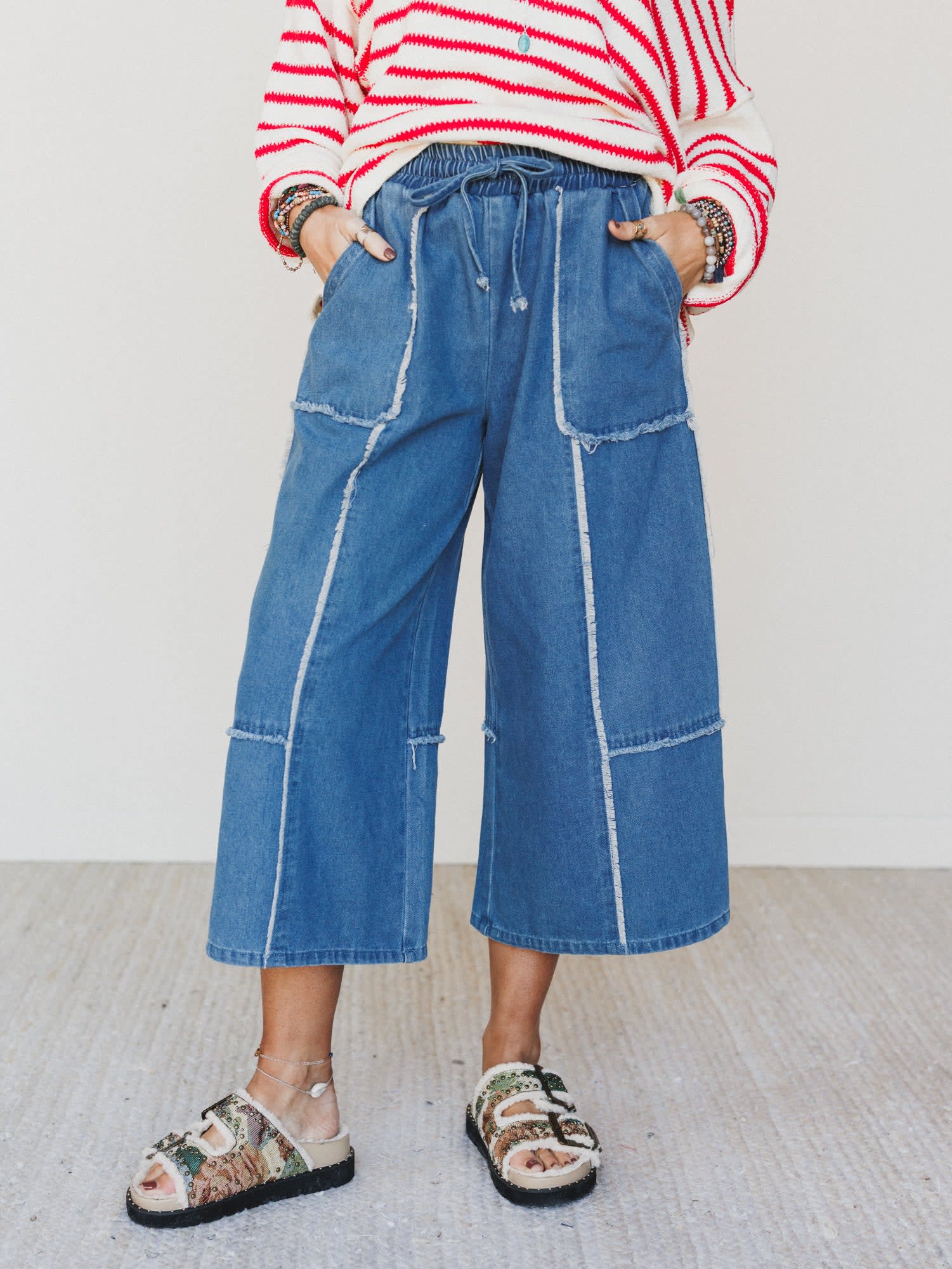 Say hello to your new everyday denim—relaxed, roomy, and radiating laid-back boho vibes. The Cozy Blues Denim Pants bring patchwork charm and comfort-forward styling in one effortlessly cool package. These wide-leg crops are made for everything from market mornings to slow Sundays.