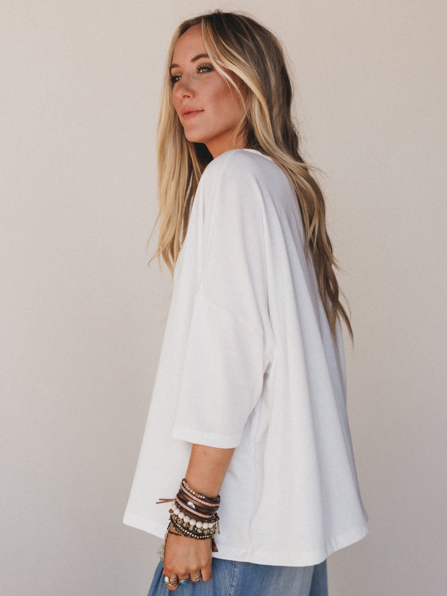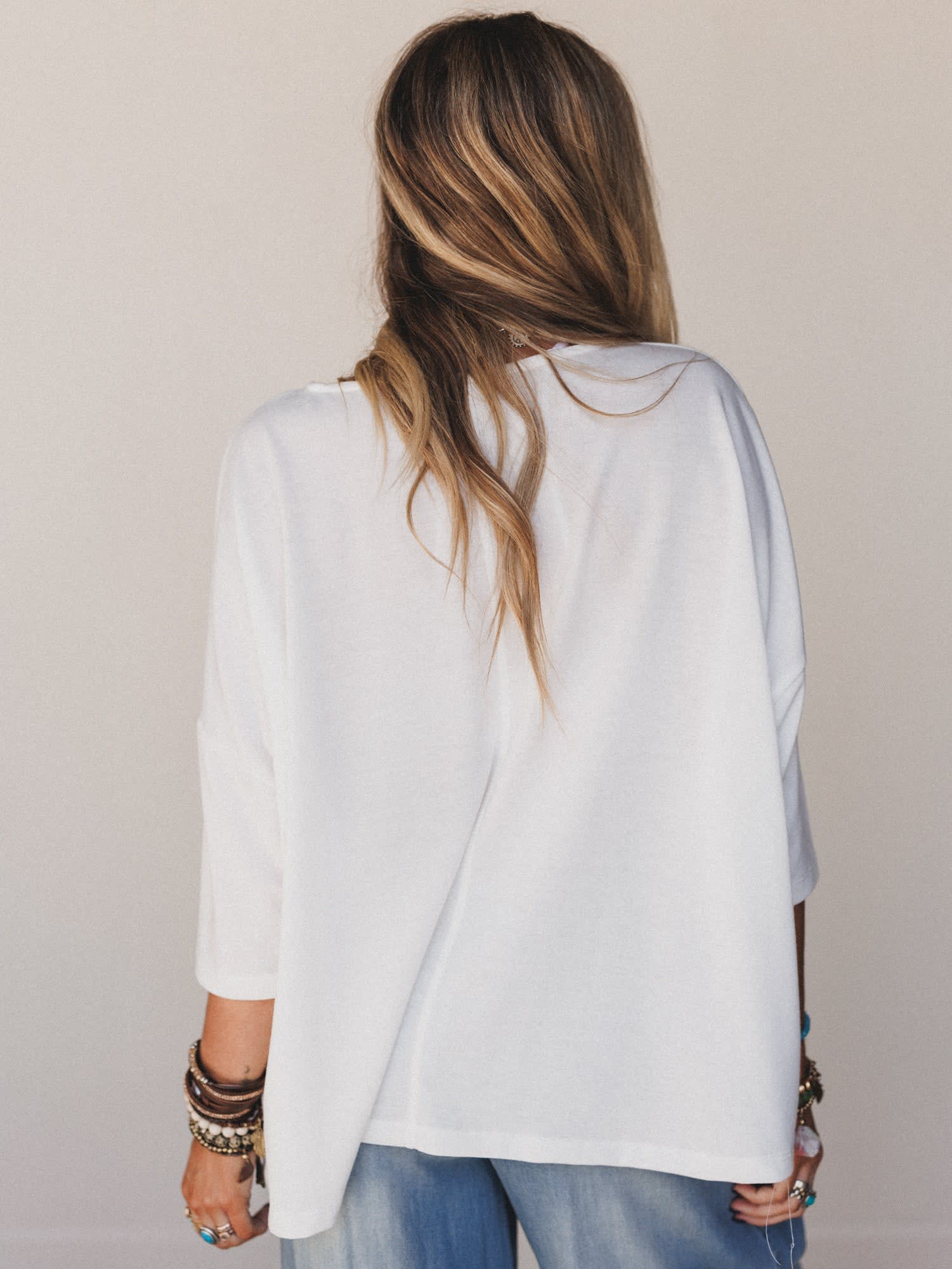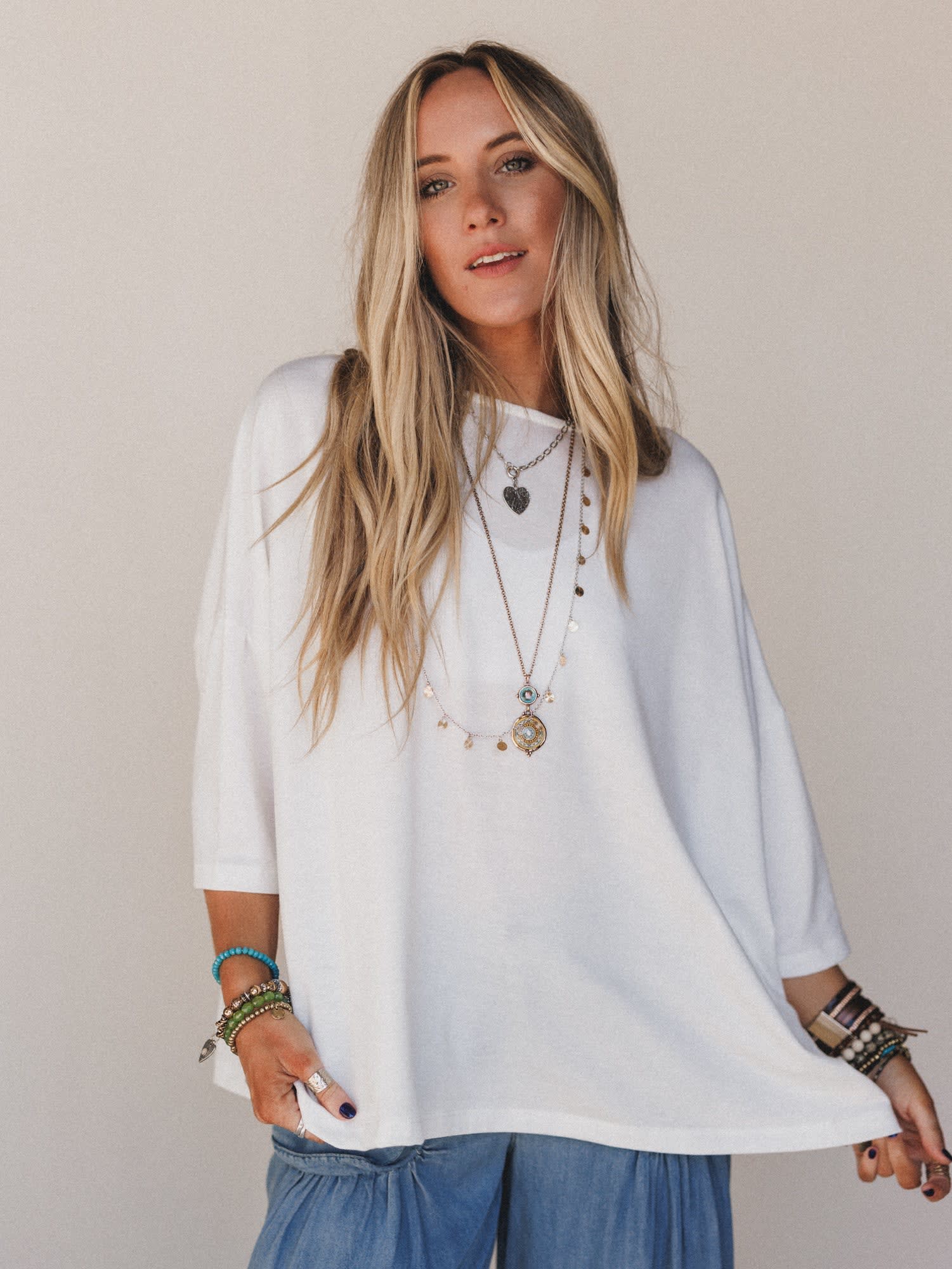 Excited to bring you the Cozy Cool Oversized Tee from our exclusive collection; The Nest by Three Bird Nest. This oversize boho tee looks amazing with light-wash jeans.