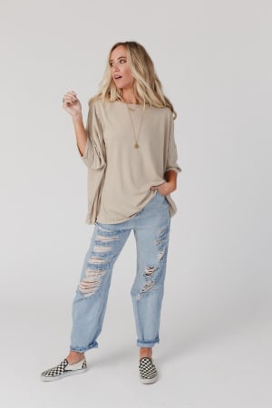 Excited to bring you the Cozy Cool Oversized Tee from our exclusive collection; The Nest by Three Bird Nest. This oversize boho tee looks amazing with light-wash jeans.