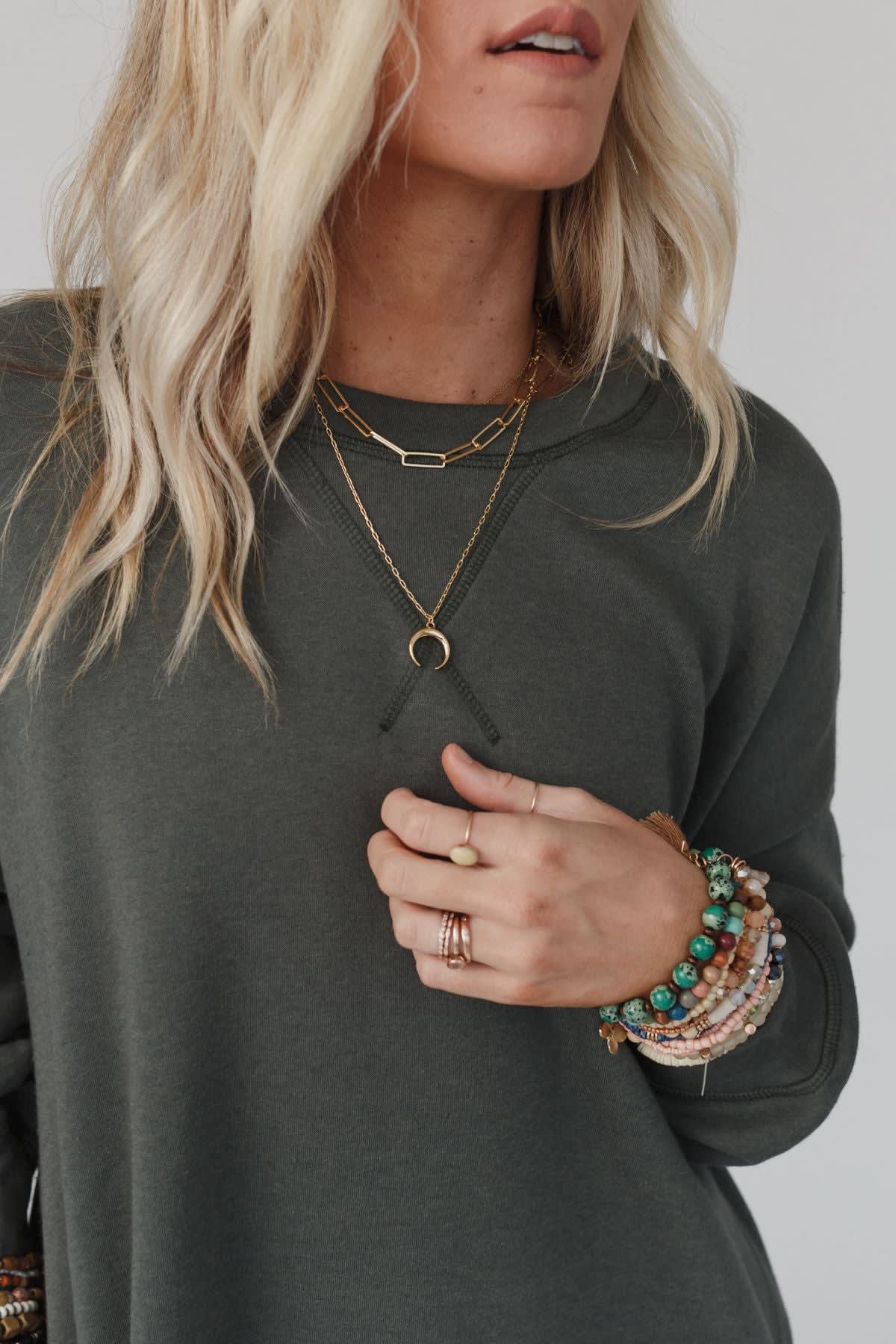 The Crescent Layered Chain Necklace is the perfect accessory to finish off any of your favorite outfits! Both boho and chic, it will become one of your favorite accessories because it features: