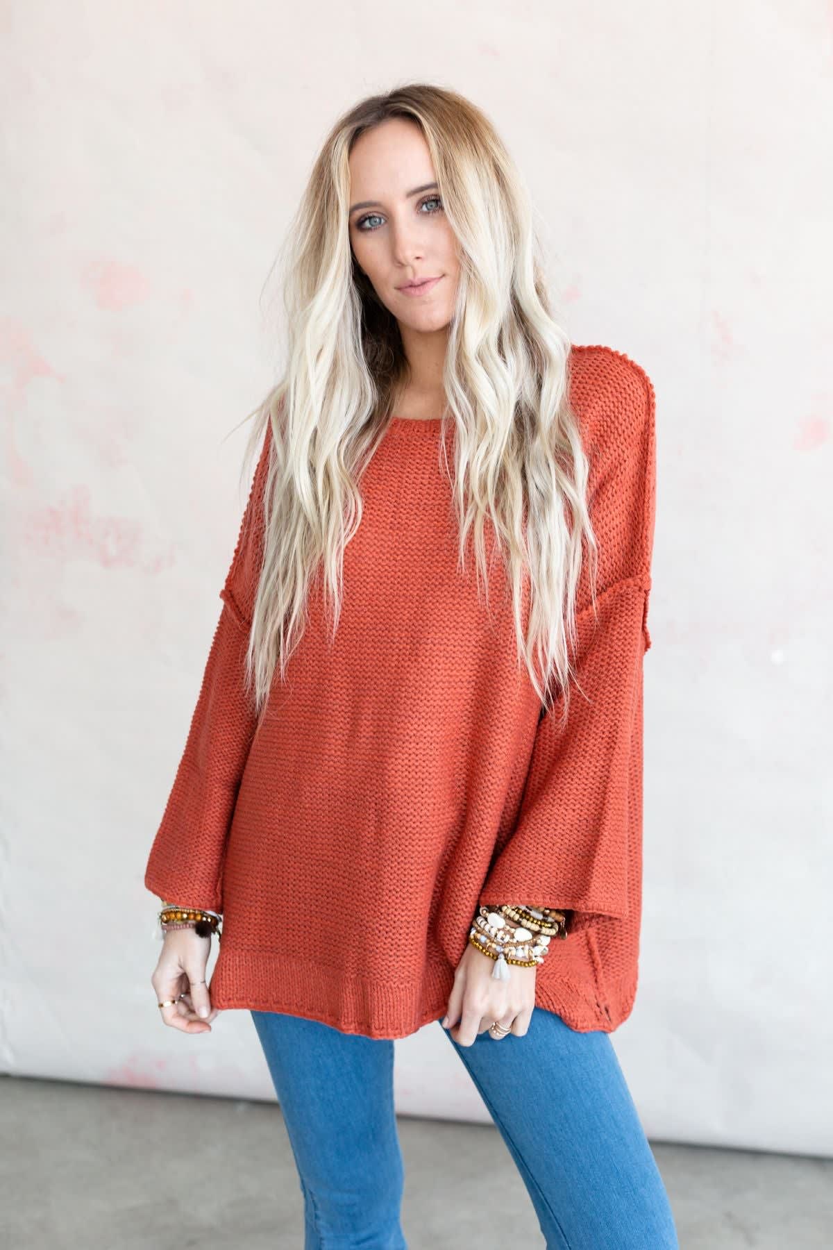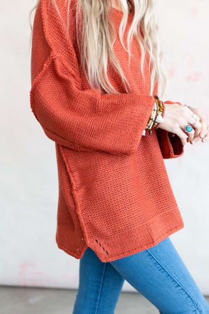 Snuggle up in a chunky boho sweater like the Crisp Air pullover. Thick, seam detailing and a fun double-hem has a bit of open-stitch detail at the notches in the sides. This modern, boxy-fit has wide cuffs and comfy Dolman-style sleeves.