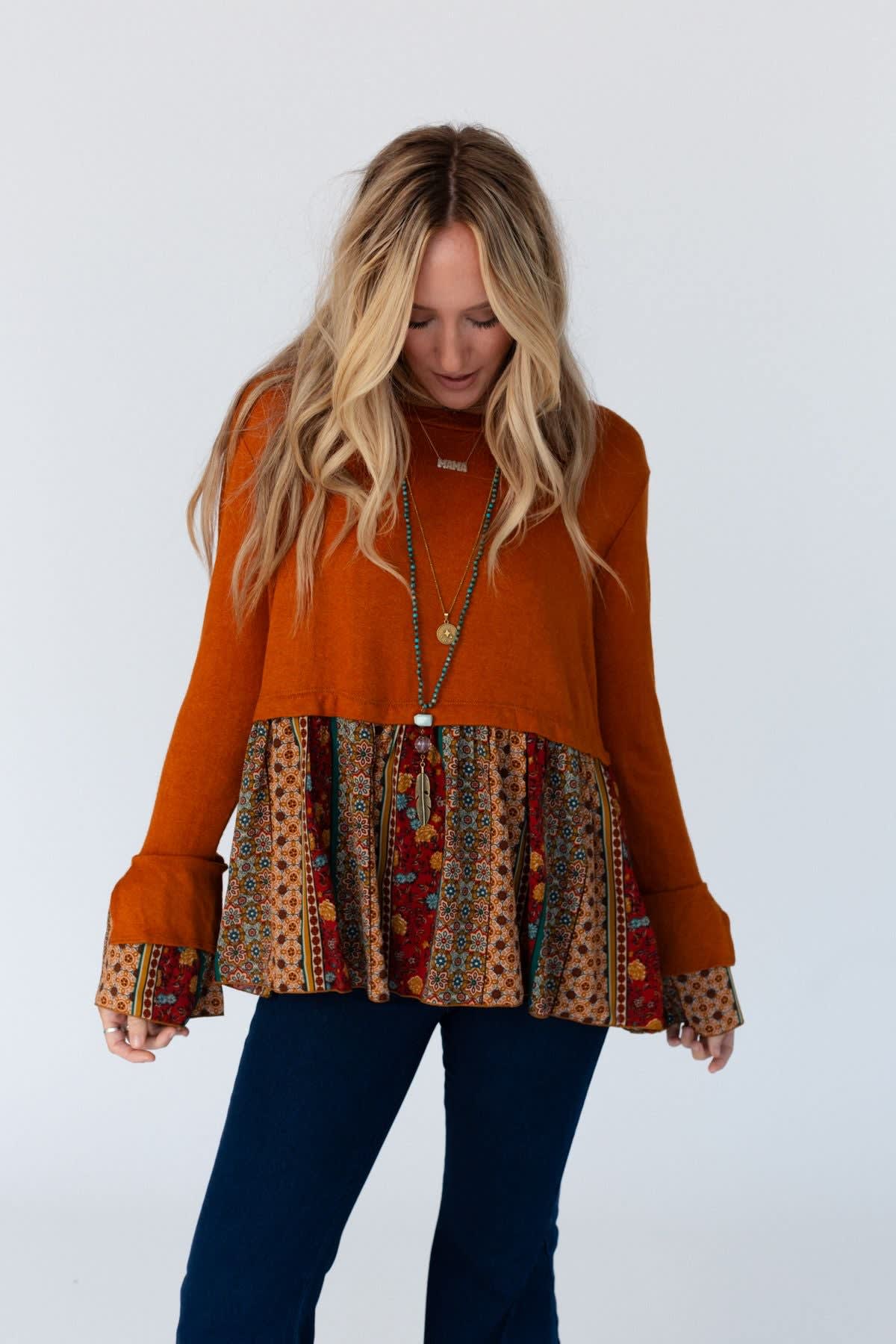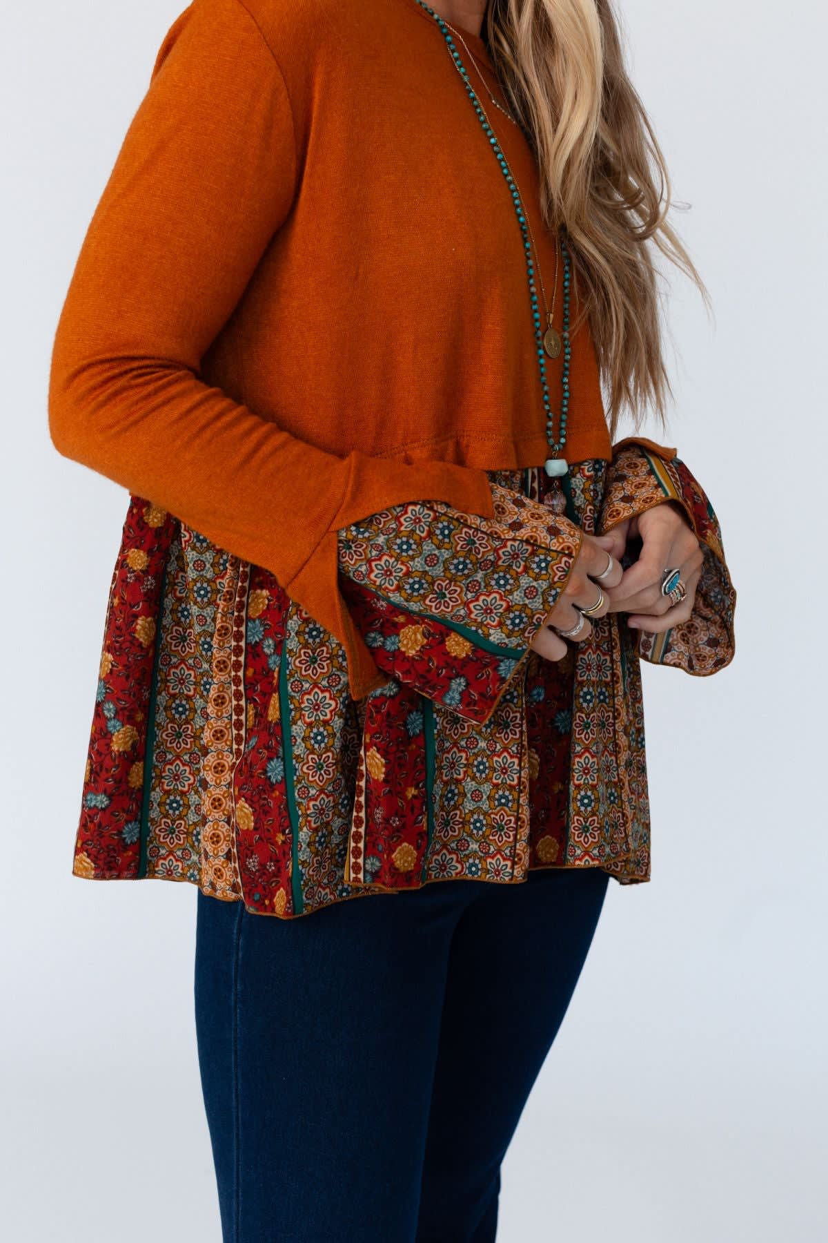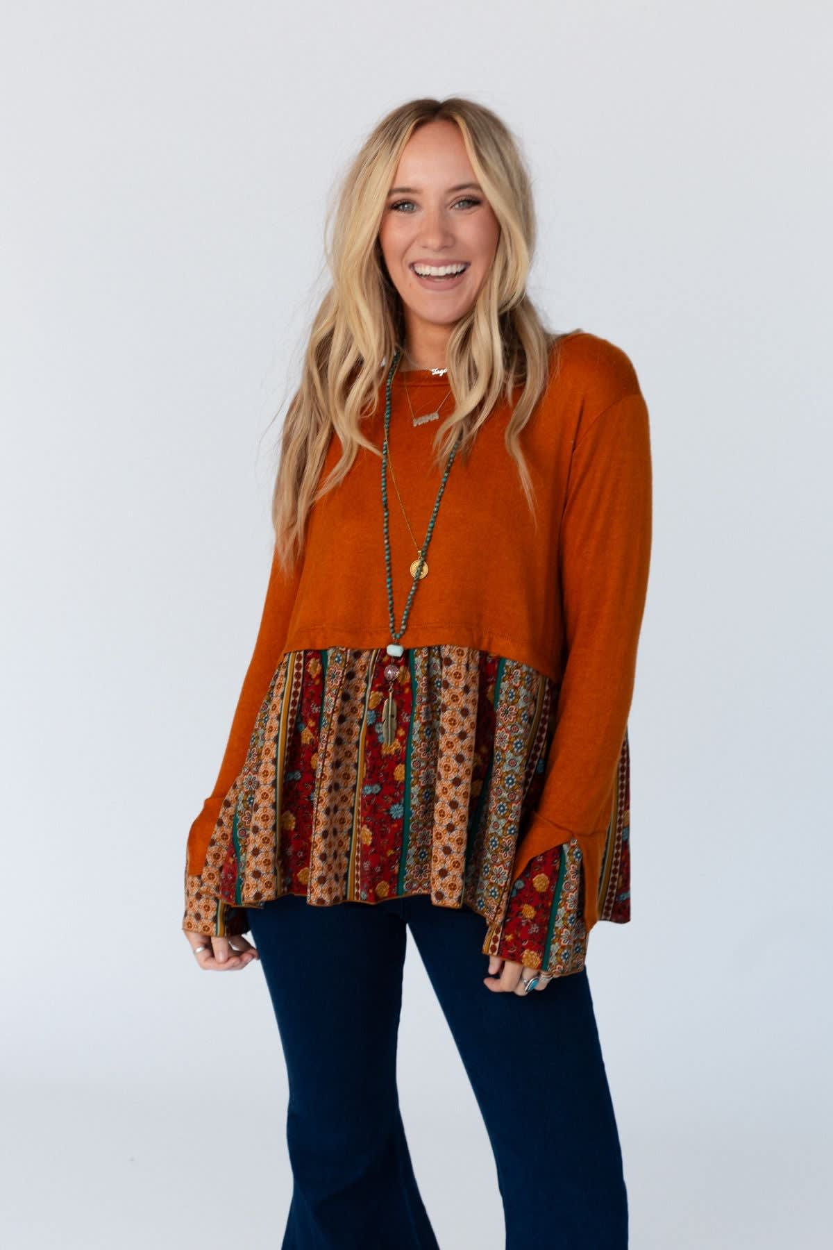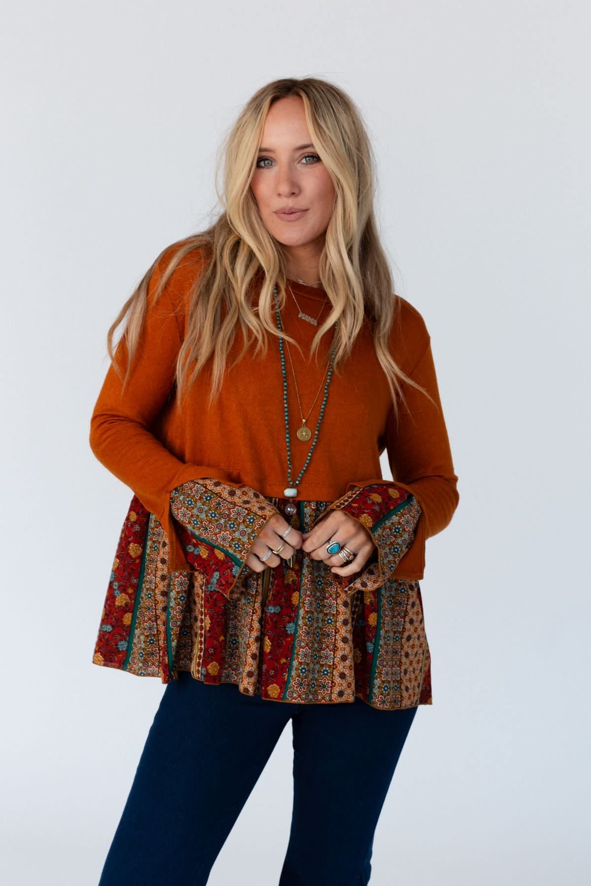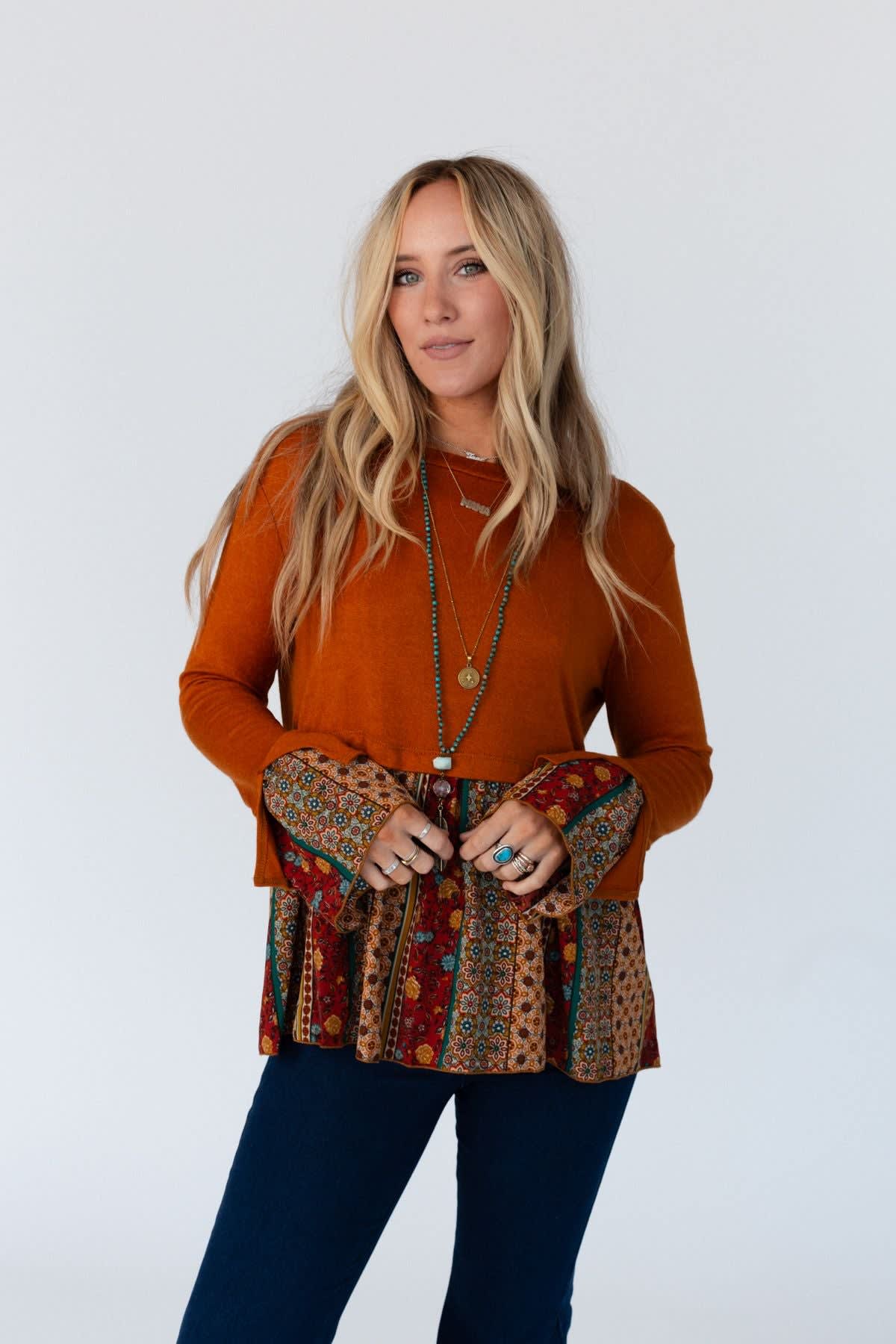 Warmth, style, and charm in one adorable top, Step out in style in the Crisp Sunny Day Bell Sleeve Top!
