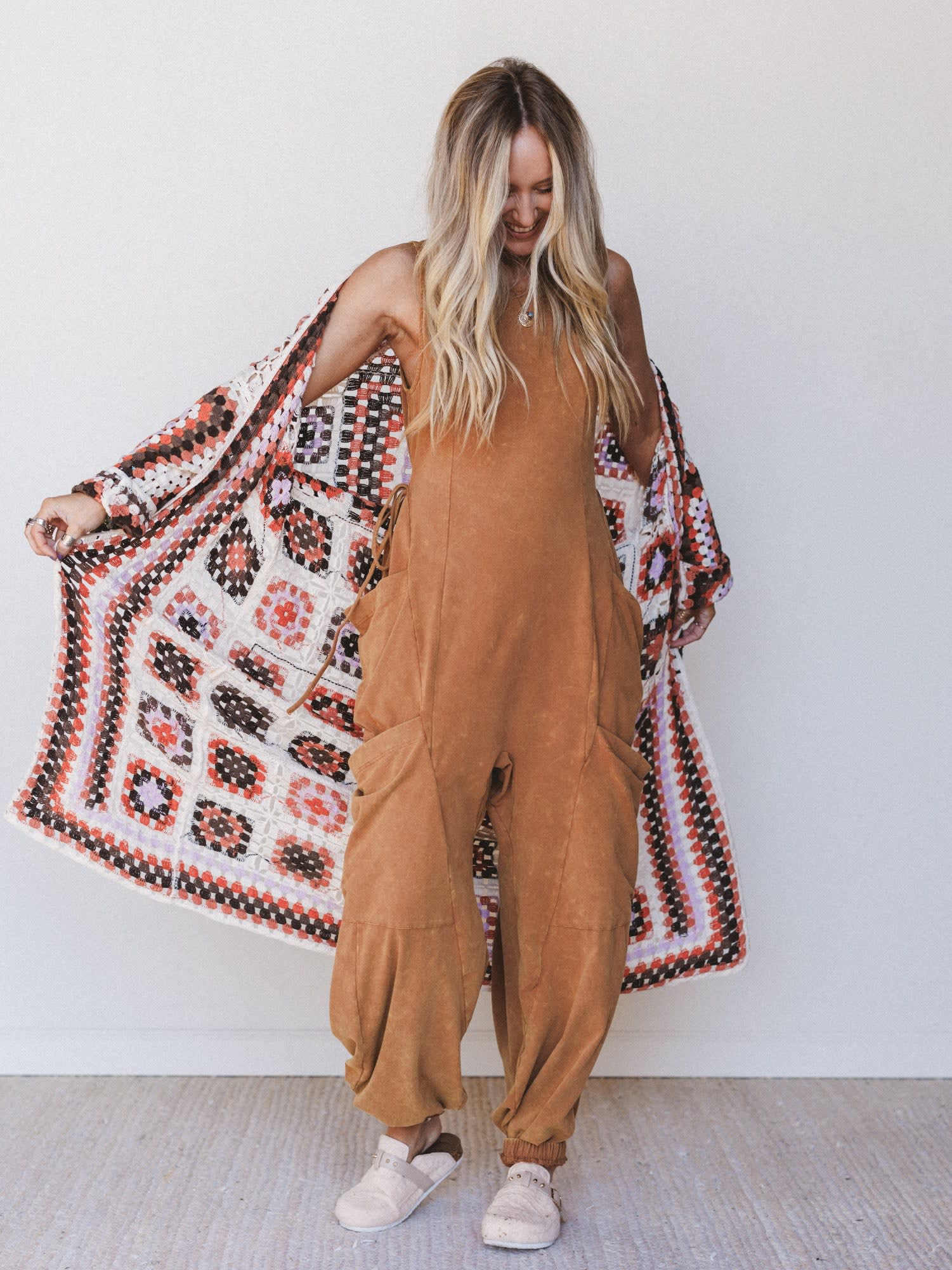 Style it with clogs or moccasins and stacks of bracelets for that effortlessly boho vibe. Perfect for market strolls, road trips, or simply embracing the art of slow fashion.