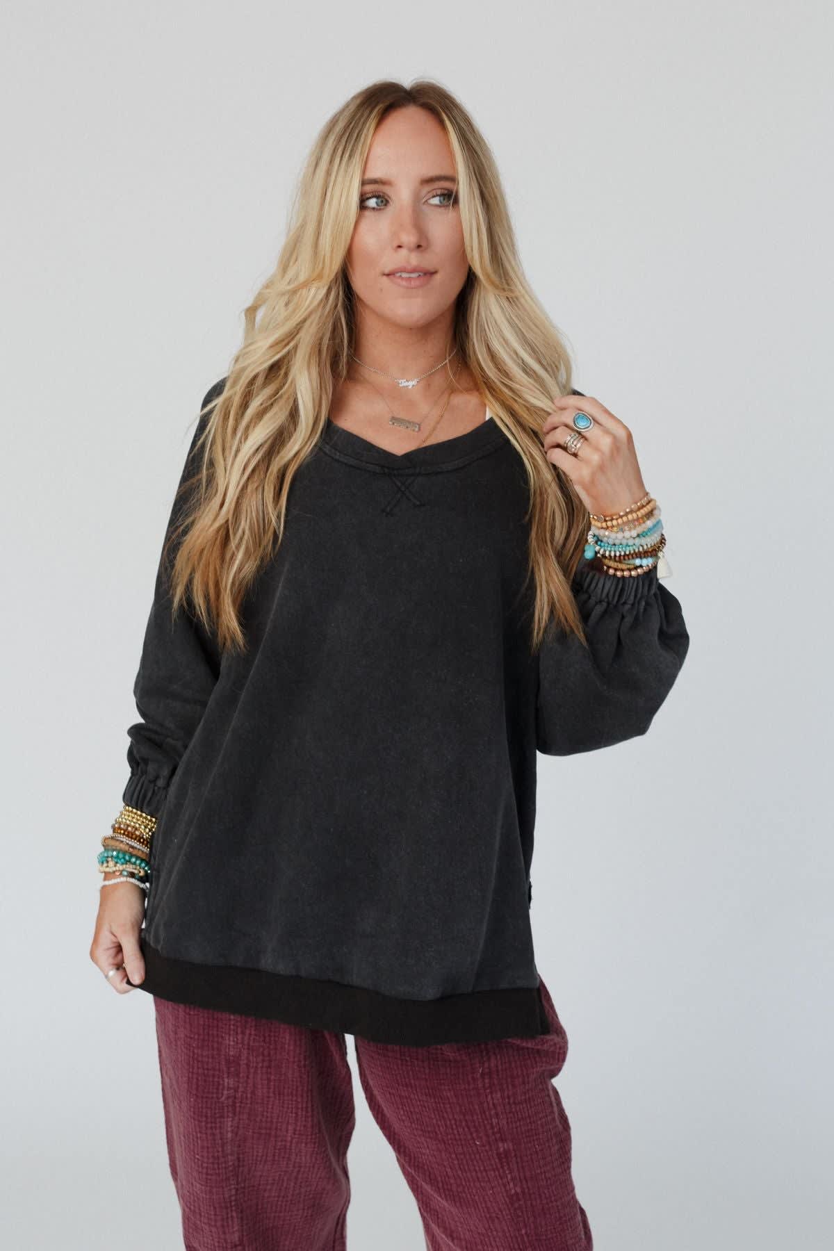 Cozy and flattering all in one - you're going to love the Crossed Paths Sweatshirt!