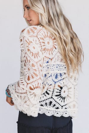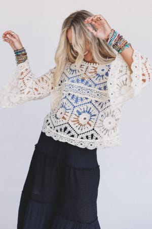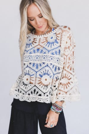 This lace crochet top looks amazing with your favorite jeans and ankle boots.