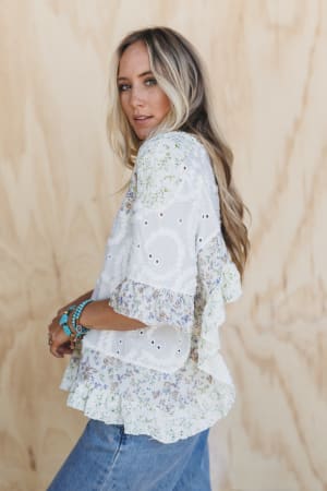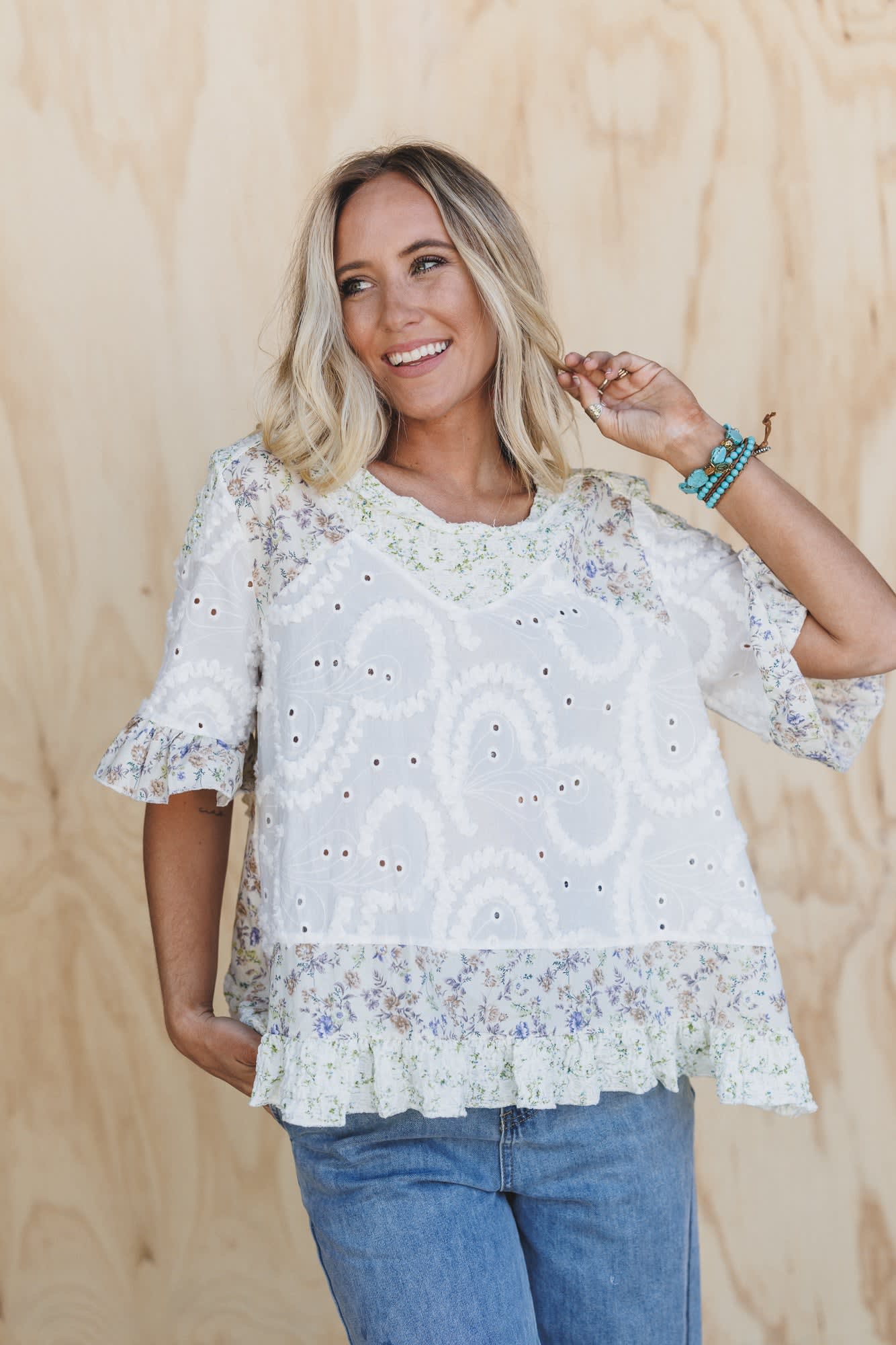 Pair this adorable eyelet top with wide leg jeans and wedges for a cute daytime look.