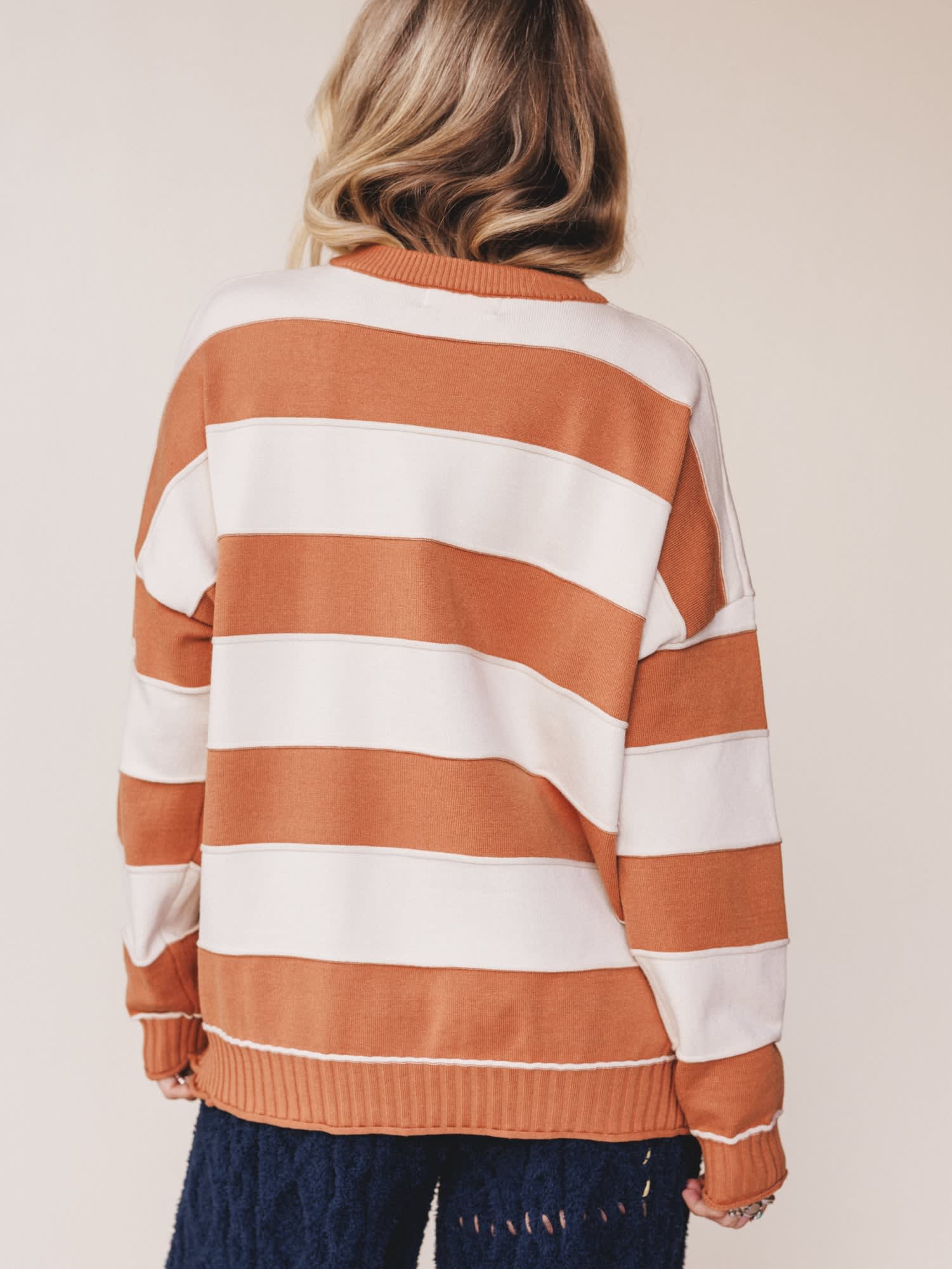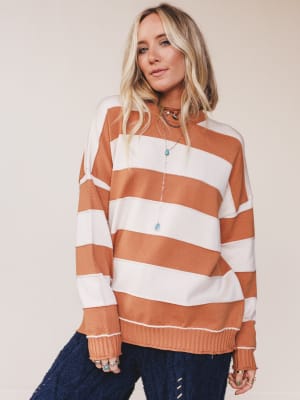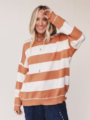 Wrap yourself in the cozy charm of the Daisy Lane Sweater – a striped essential with laid-back appeal and easygoing polish. Featuring a wide, horizontal stripe design in mellow neutrals, this sweater brings both comfort and calm to cooler days.