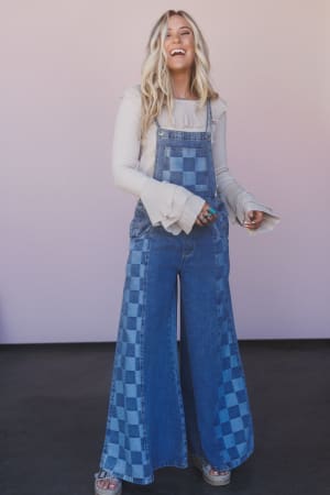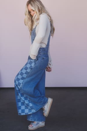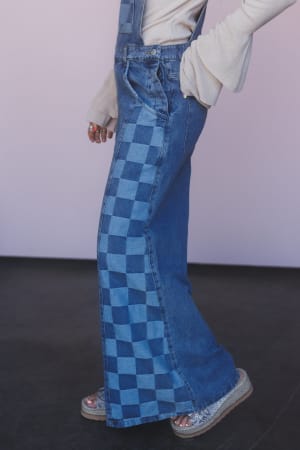 - Checkered denim overalls