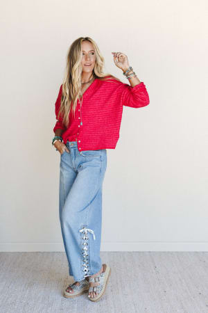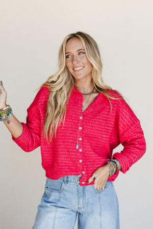 Cozy up in casual charm with this soft striped sweater. Its lightweight knit and bright red tones make it a layering essential all season long.