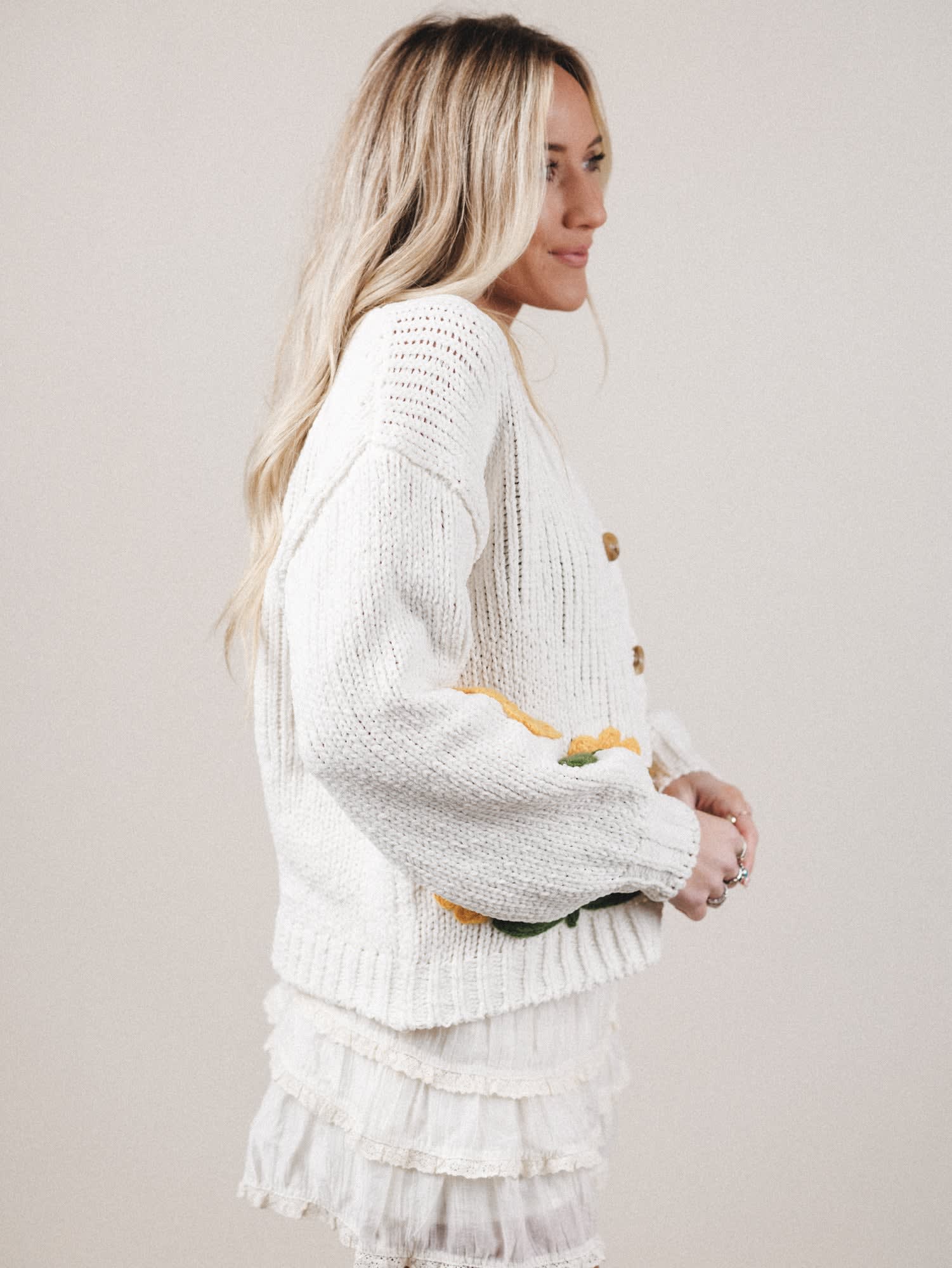 Whimsical, cozy, and sure to bring a smile—the Daydream Supply Sweater is a boho take on playful knits. With hand-stitched sunflower accents and a vintage-inspired fit, this cardigan is like sunshine in wearable form.