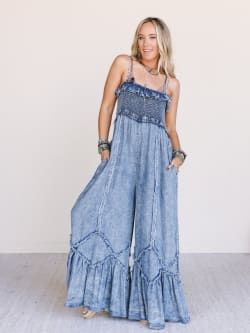 Ready for sunshine and sweet adventures, the Daytrip Darling Jumpsuit is your go-to for standout boho style with all-day comfort. Whether you're road tripping or festival-hopping, this denim dream is made to move.