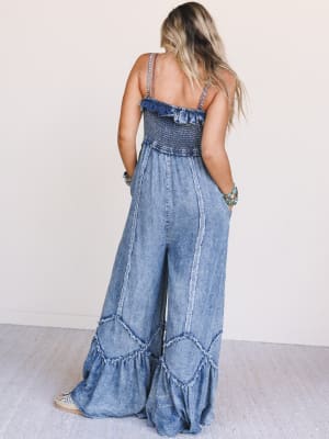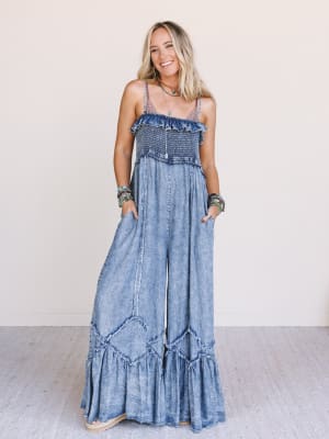 Ready for sunshine and sweet adventures, the Daytrip Darling Jumpsuit is your go-to for standout boho style with all-day comfort. Whether you're road tripping or festival-hopping, this denim dream is made to move.