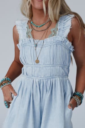 Effortless and easy, you can never have too many comfy cute rompers and theΒ Dazzle In Denim Romper is no exception!