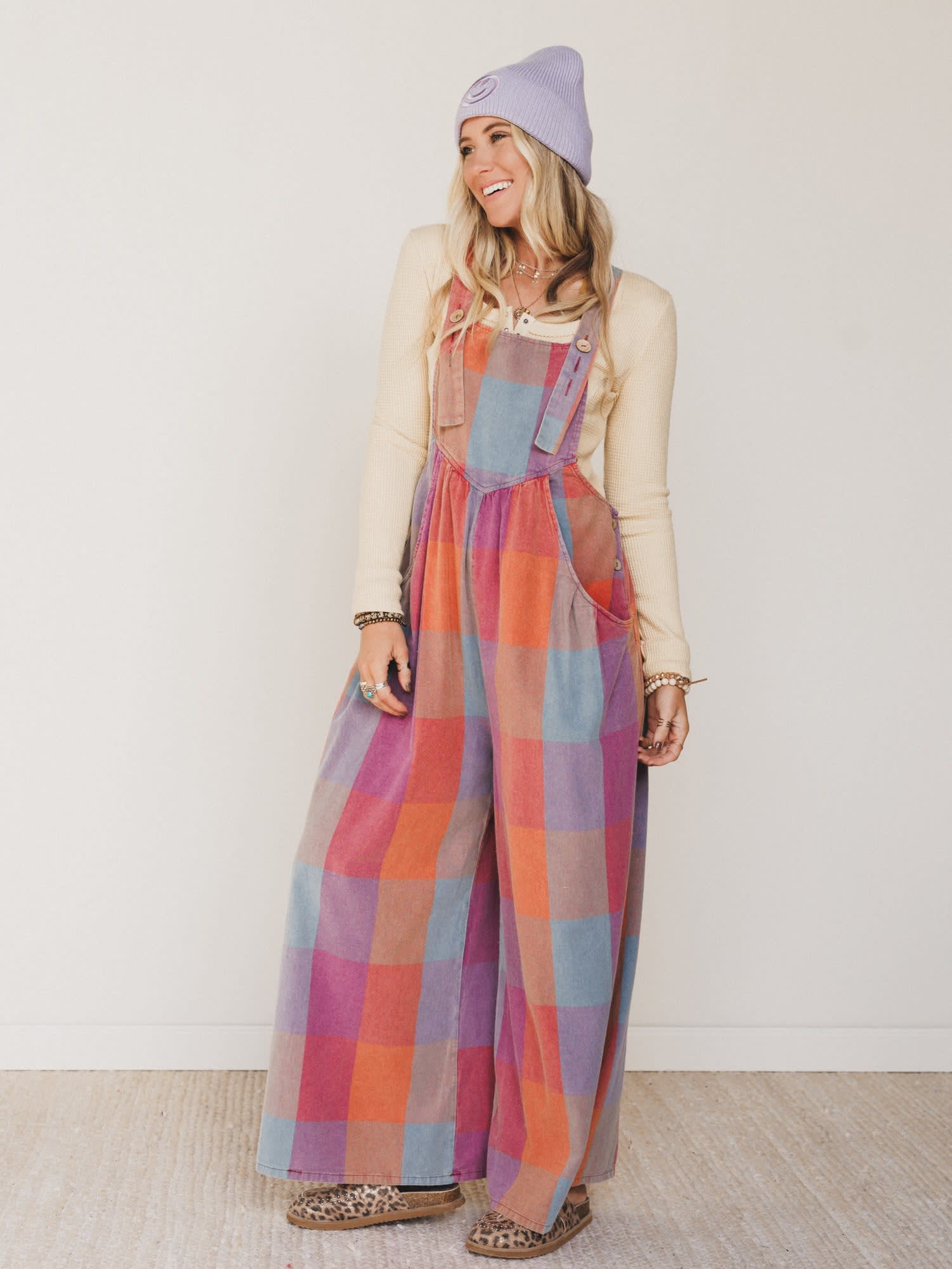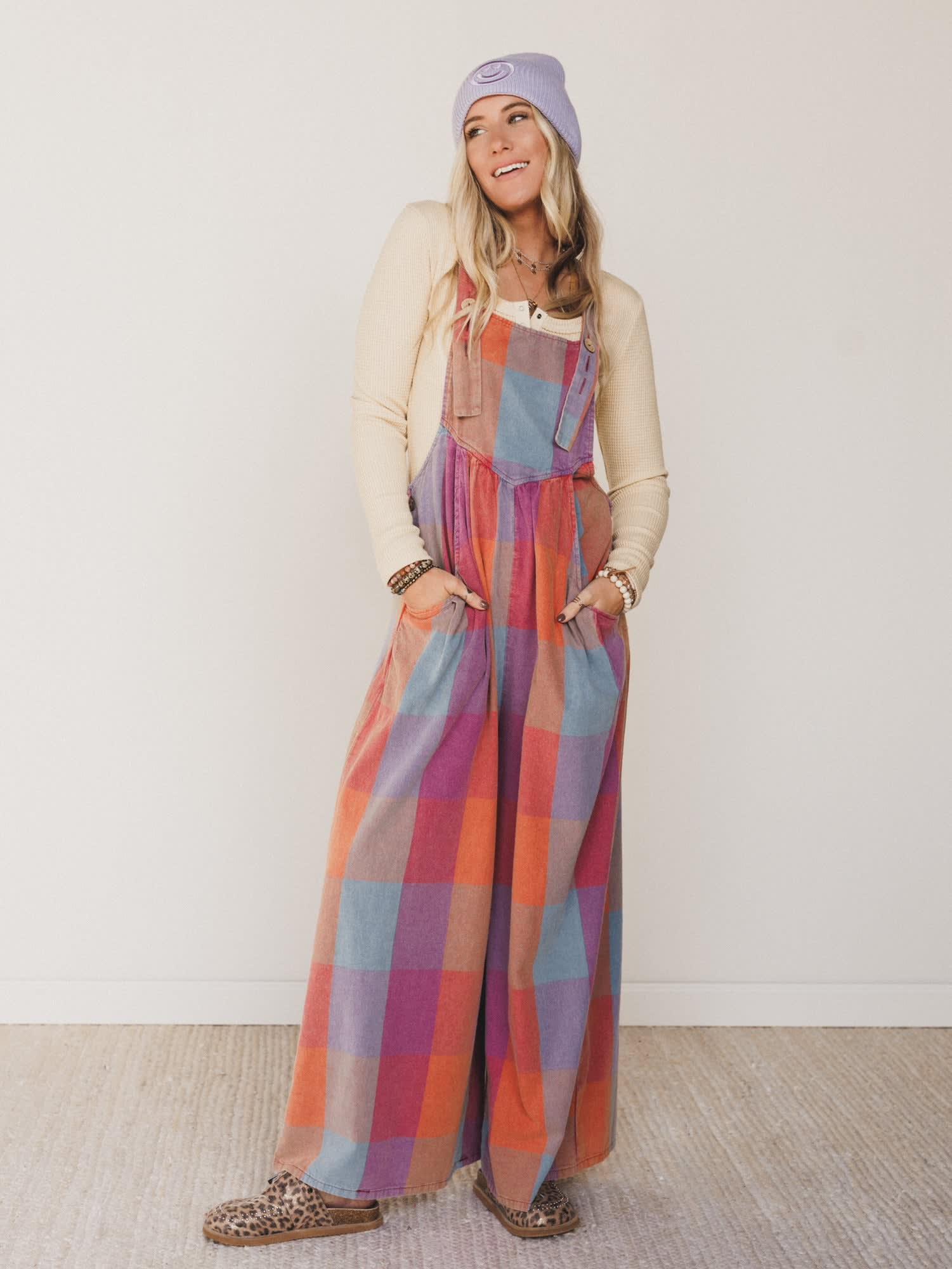 Bright, bold, and made for movement—these overalls are a whole mood. The Delyah Plaid Pattern Overalls bring vintage patchwork energy in a modern, wide-leg silhouette that's playful, comfy, and totally boho.