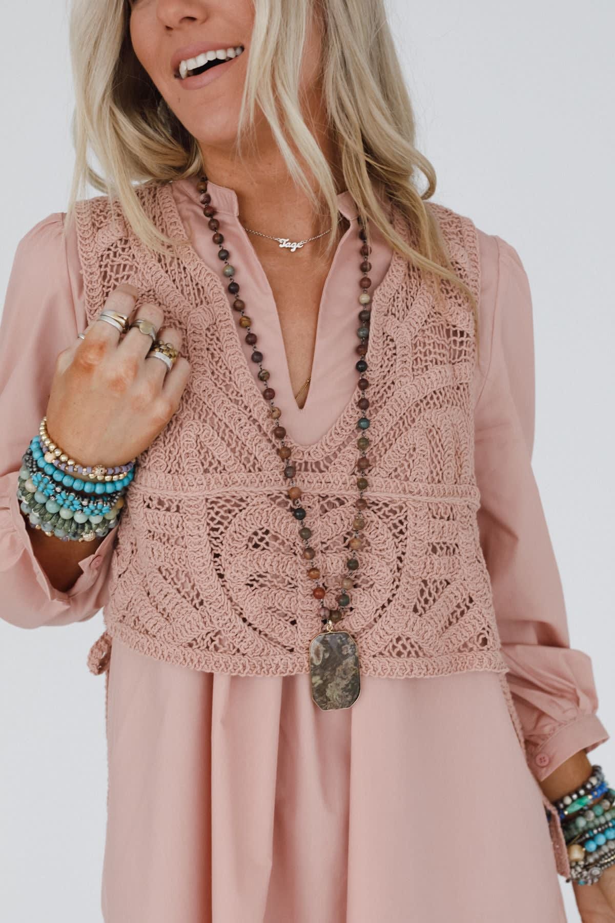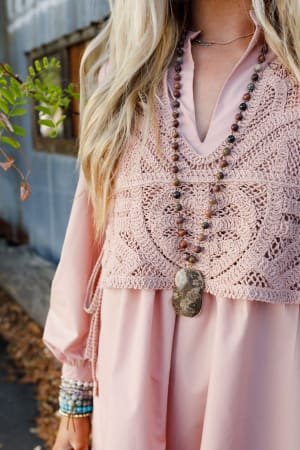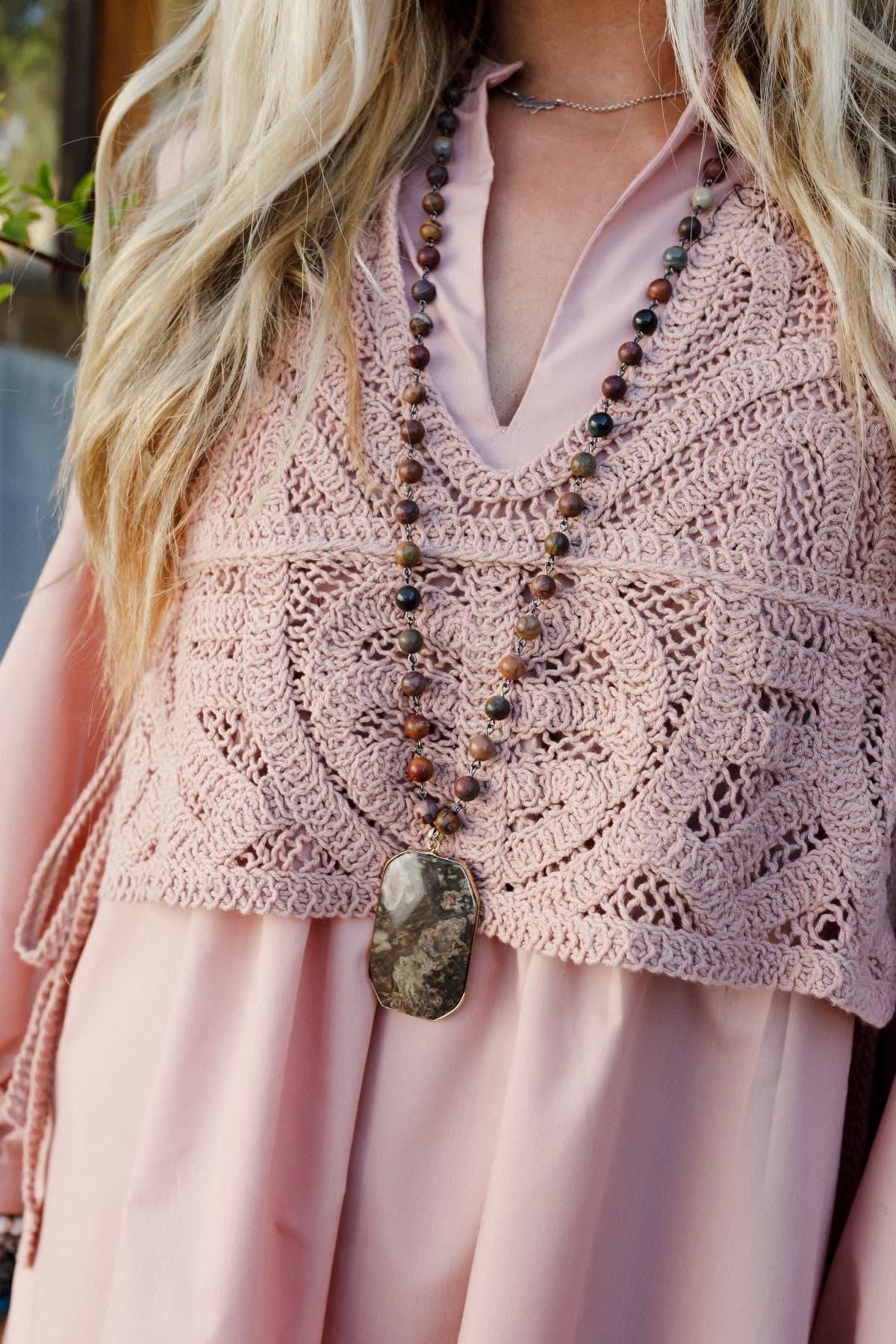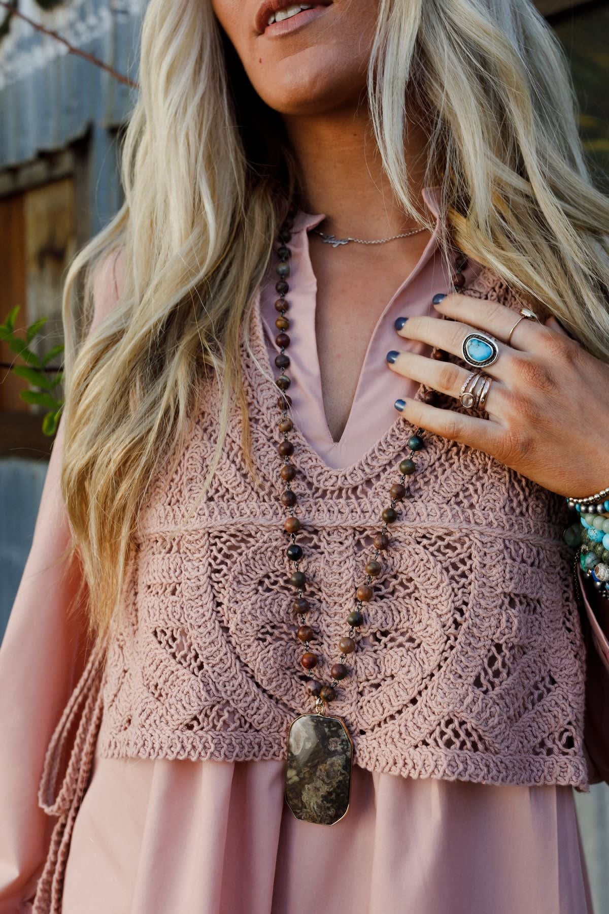 Add a stand-out statement piece with the Desert Dawn Necklace, a must- have to finish off all your cute boho looks!