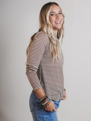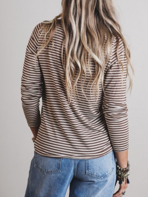 - Timeless brown and cream stripes with a softly fitted silhouette
