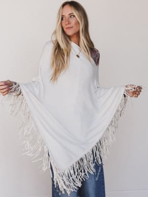 Drift into a desert dream with the Dream Catcher Poncho—a statement layer that brings effortless boho flair to your everyday looks. With its cozy drape, fringe trim, and floral mesh sleeves, it’s the kind of piece you’ll reach for on repeat, whether you're wandering farmer's markets or chasing sunsets.