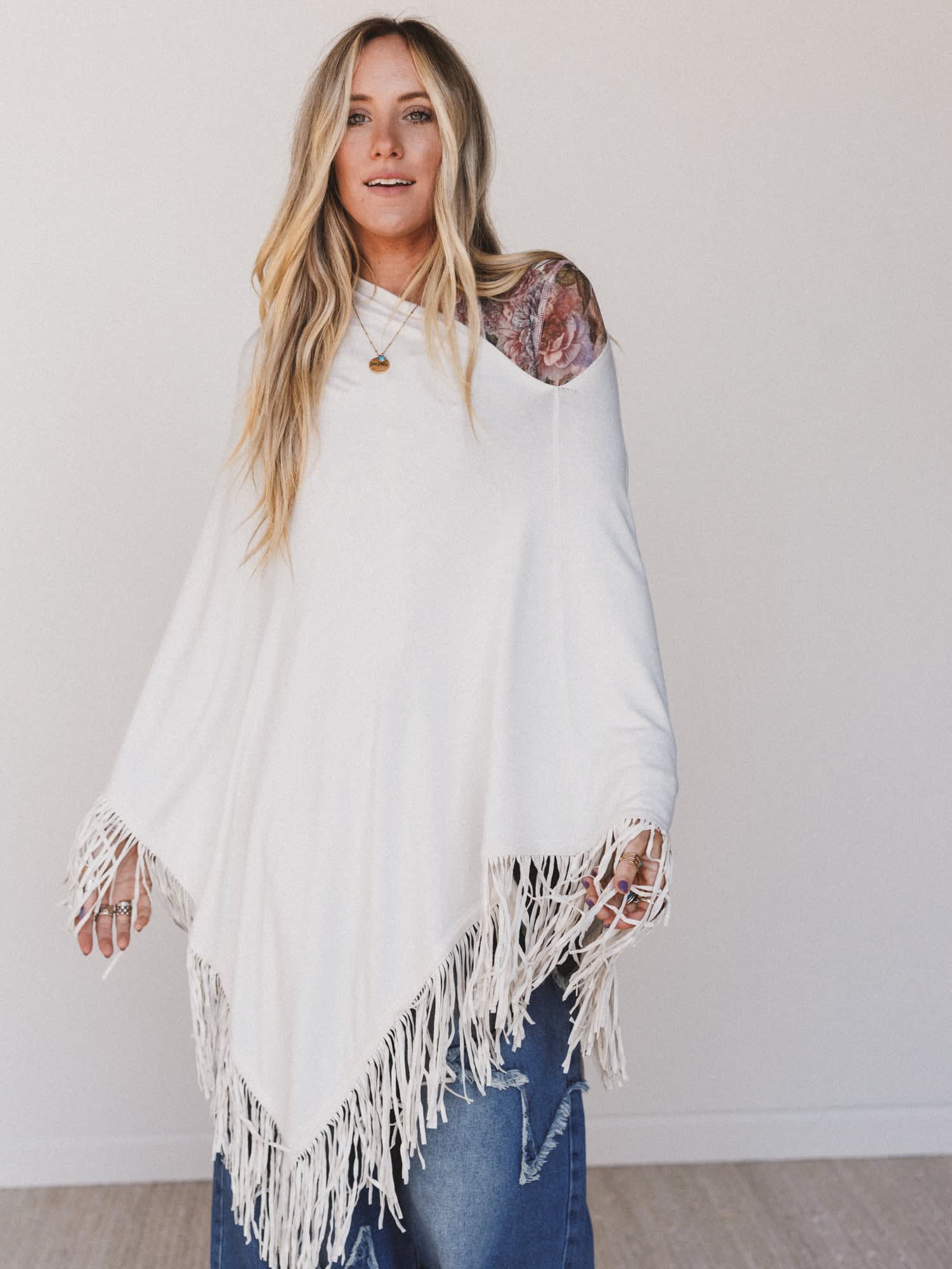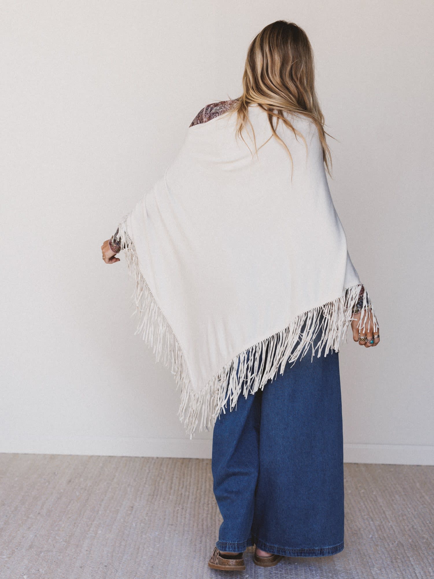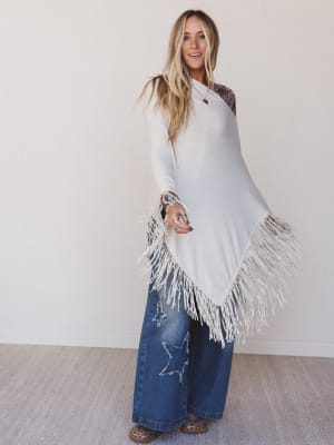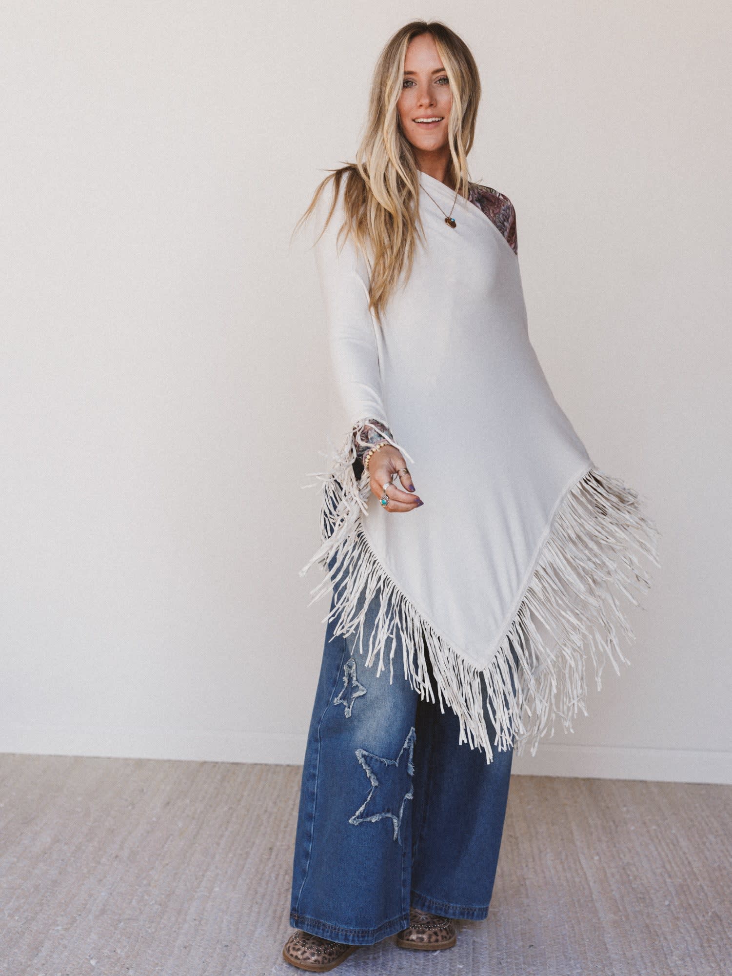 Drift into a desert dream with the Dream Catcher Poncho—a statement layer that brings effortless boho flair to your everyday looks. With its cozy drape, fringe trim, and floral mesh sleeves, it’s the kind of piece you’ll reach for on repeat, whether you're wandering farmer's markets or chasing sunsets.