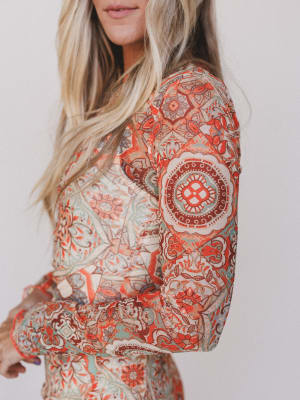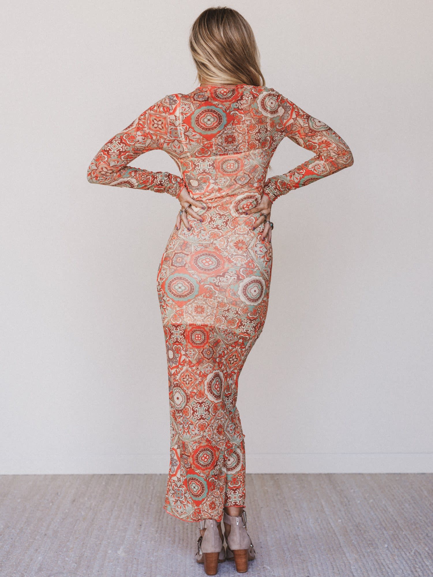 Unleash your inner goddess in the Dreamtone Maxi Dress—an ultra-flattering statement piece that feels like wearable art. With a swirling medallion print and second-skin fit, this sheer mesh dress is ready for nights under string lights or spontaneous road trip detours.