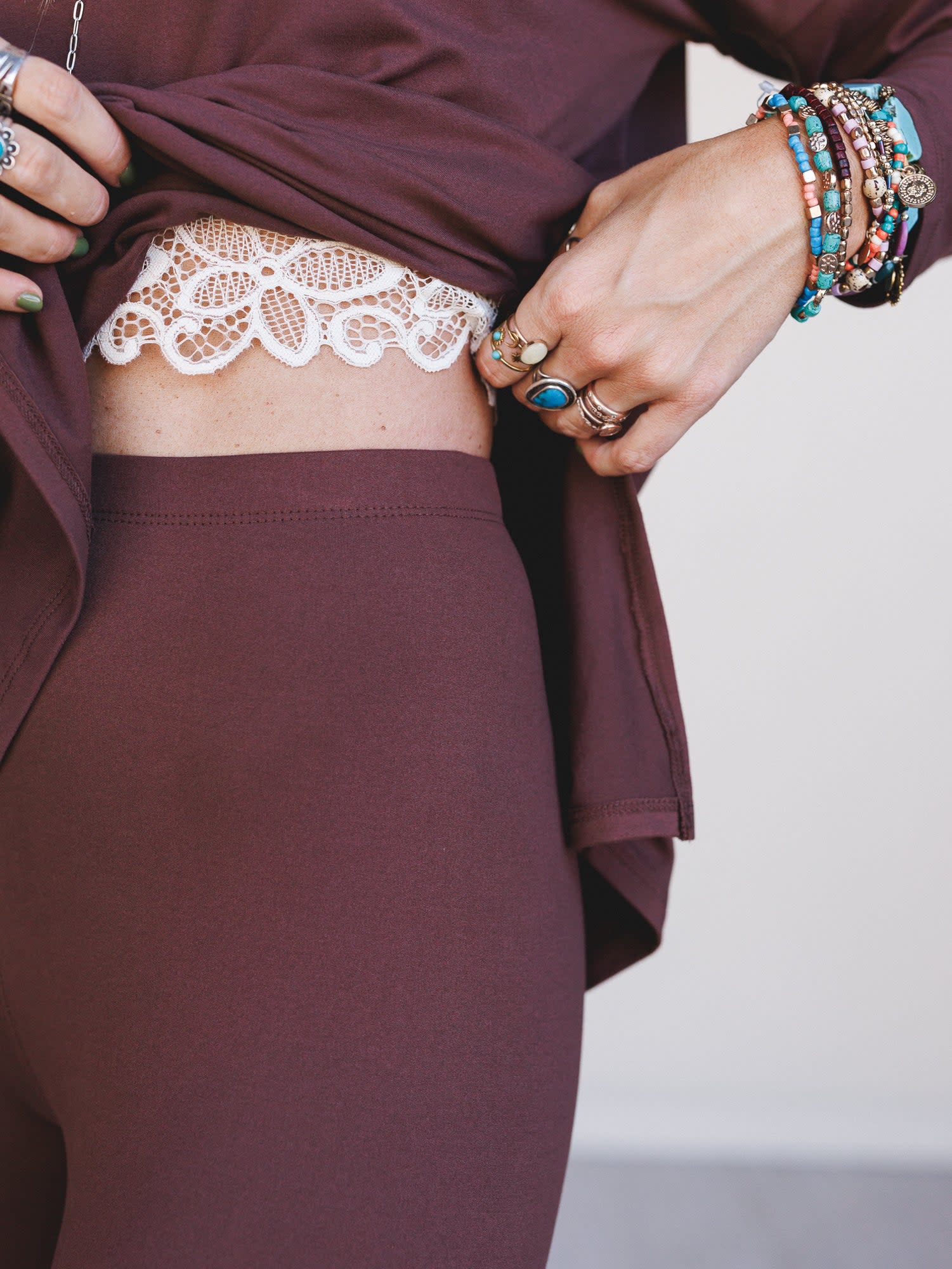 - Versatile brown shade that layers beautifully with bralettes, cardigans, or sneakers