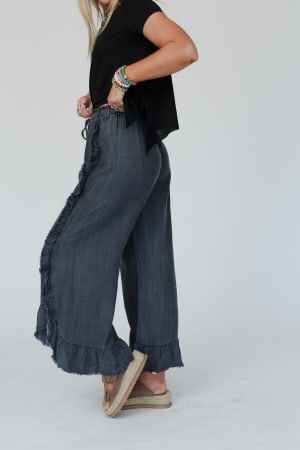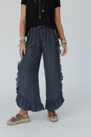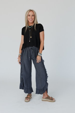 A must-have boho statement, both comfy and cute, the Drift Wave Ruffle Wide Leg Pants are perfect to be dressed up or down to elevate all your favorite boho tops!