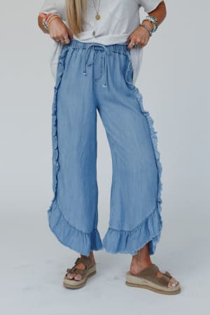 A must-have boho statement, both comfy and cute, the Drift Wave Ruffle Wide Leg Pants are perfect to be dressed up or down to elevate all your favorite boho tops!