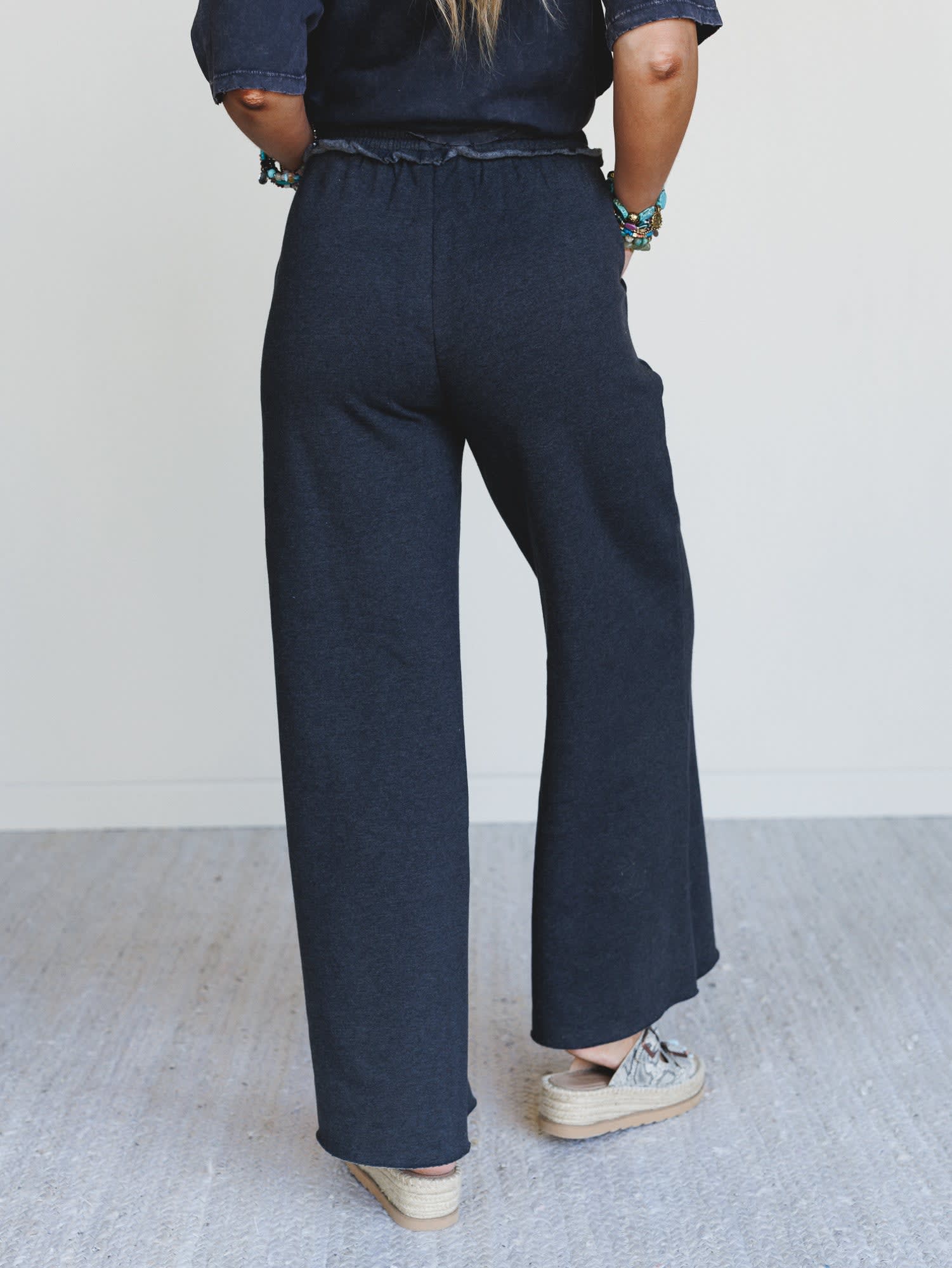 • Soft charcoal knit with a relaxed, wide leg silhouette