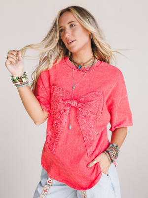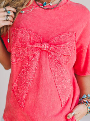 Sweet, playful, and just a little unexpected—the Driftwood Bow Top is a statement piece that adds instant charm to your boho lineup. Its oversized bow detail gives classic tee vibes a bold, feminine twist.