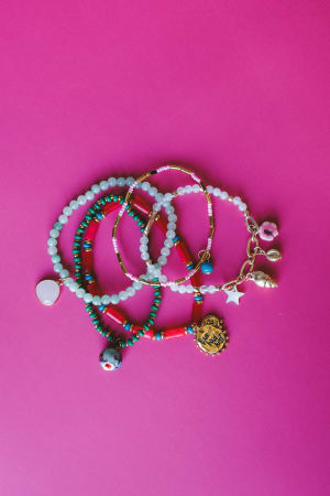 Root your style in nature with this earthy stack of bracelets—just the thing to complete your bohemian accessories collection.