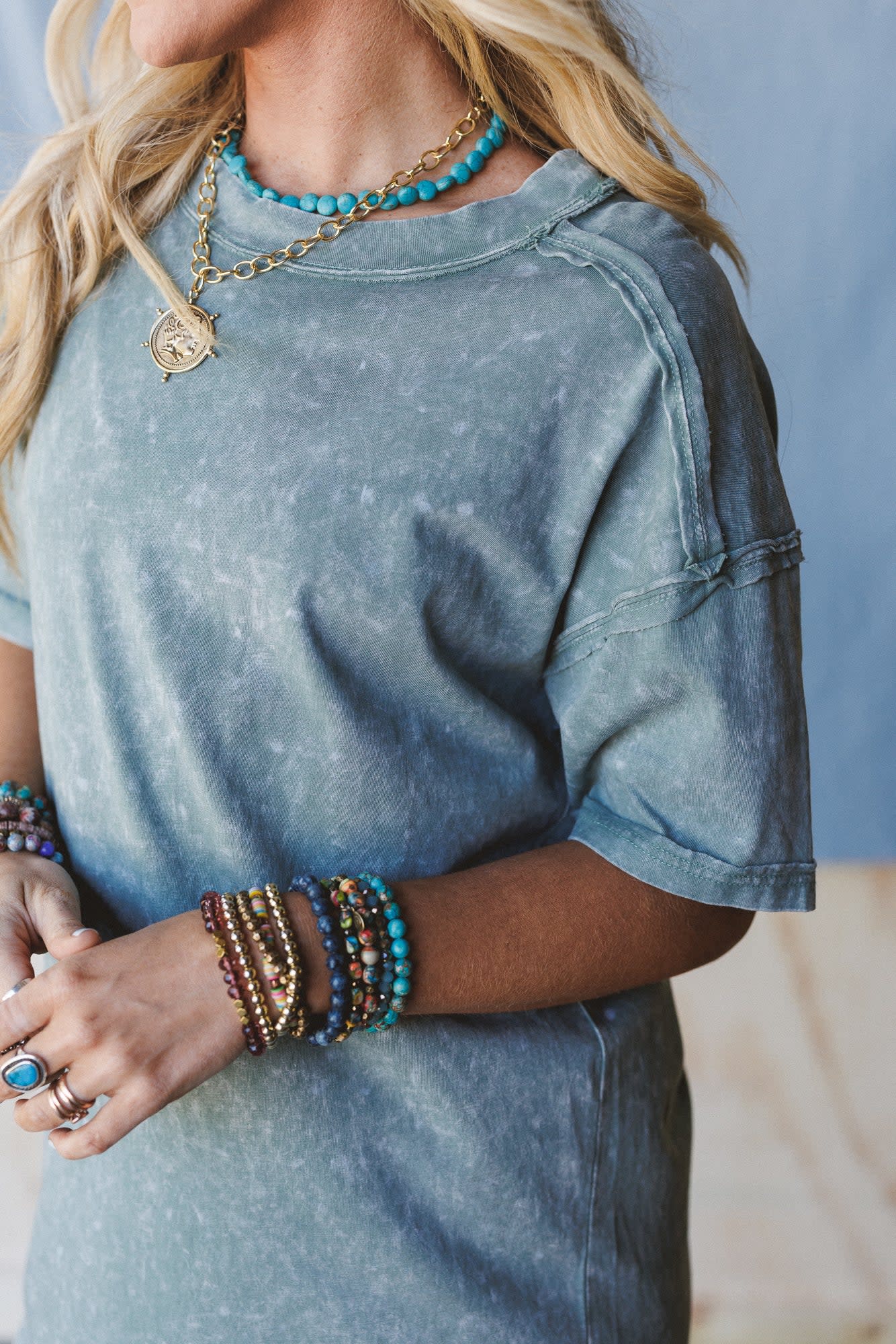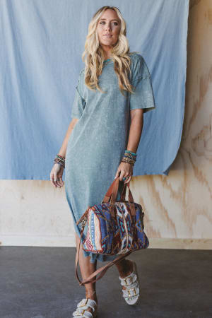 For an effortless throw-on-and-go look, turn to this boho maxi t-shirt dress that looks great with sneakers.