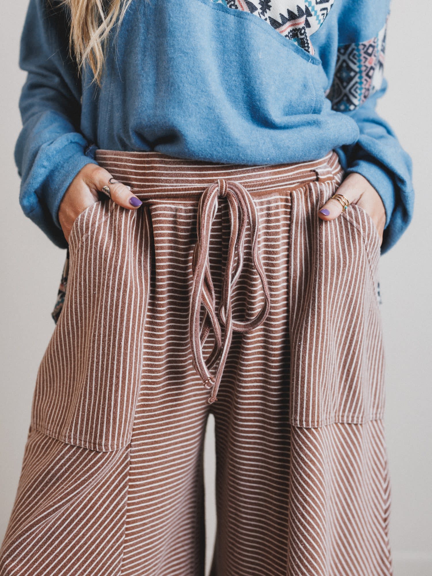 Easy, breezy, and totally unique—the Echo Pinstripe Pants bring effortless cool to your everyday rotation. With flowy movement and a boho edge, these wide-leg pants are made to stand out while keeping you ultra-comfortable from sunup to sundown.