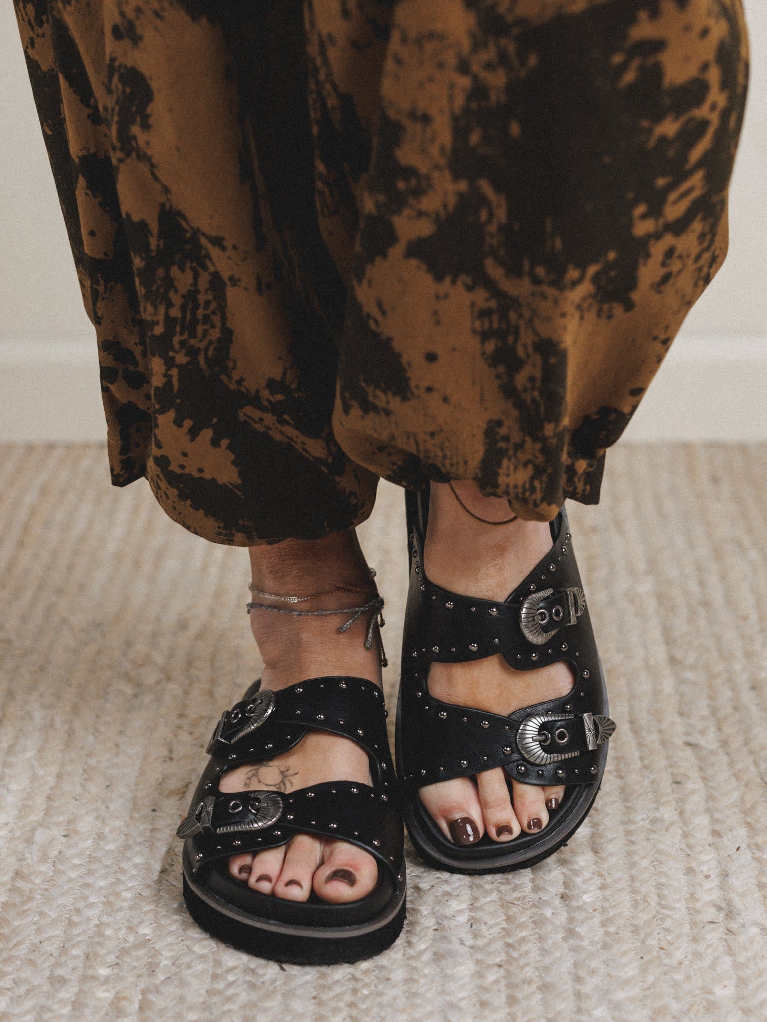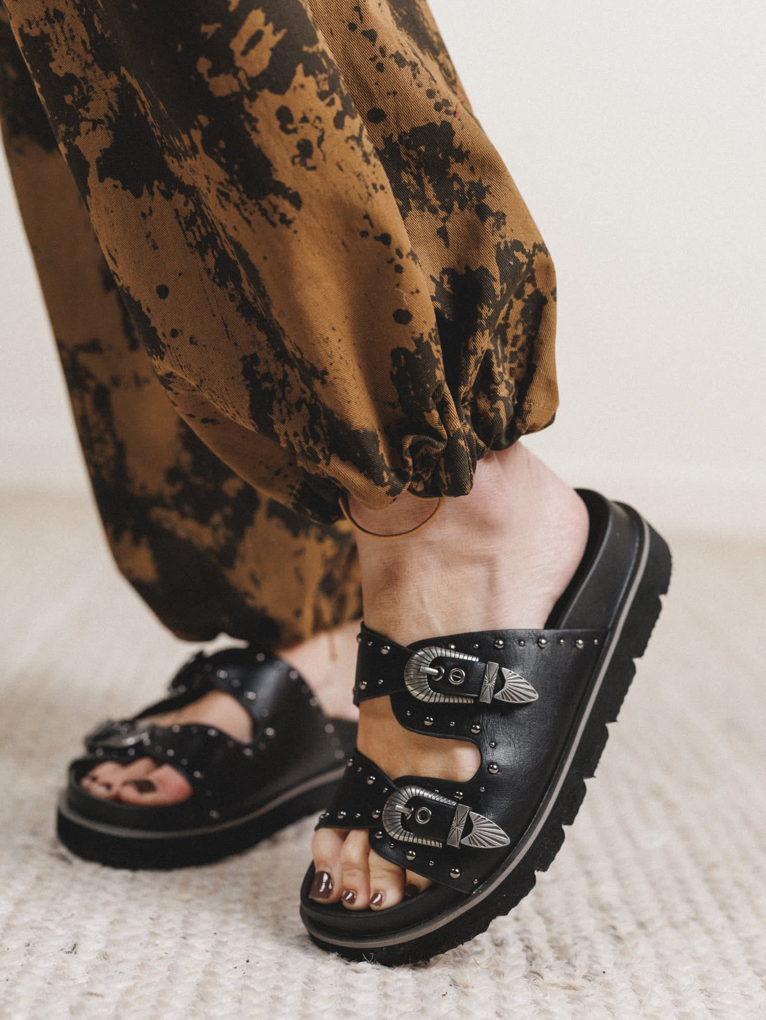 Slip into something bold and badass with the Effie Buckle Slide. These western-inspired slides are all about effortless edge—perfect for grounding your flowy fits or adding some grit to your favorite boho staples.
