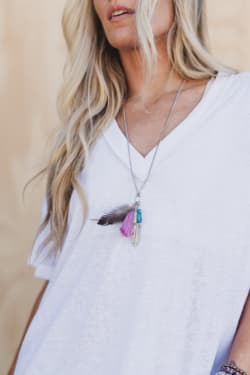 - Add a subtle pop of color to any look with this gorgeously textured necklace.