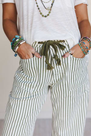 These bohemian jeans feature a unique barrel silhouette that makes them perfect to pair with chunky loafers.