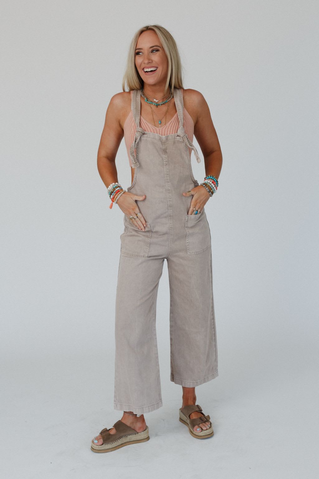 A new wardrobe essential, the Elliot Knotted Overalls will have you leaning for more looks to style it with!