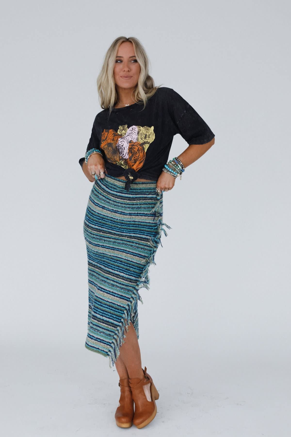 It's all things boho with the Ellis Fringe Midi Skirt! So effortlessly chic, it’s a head-turner you’ll love pairing with all your favorite tops!