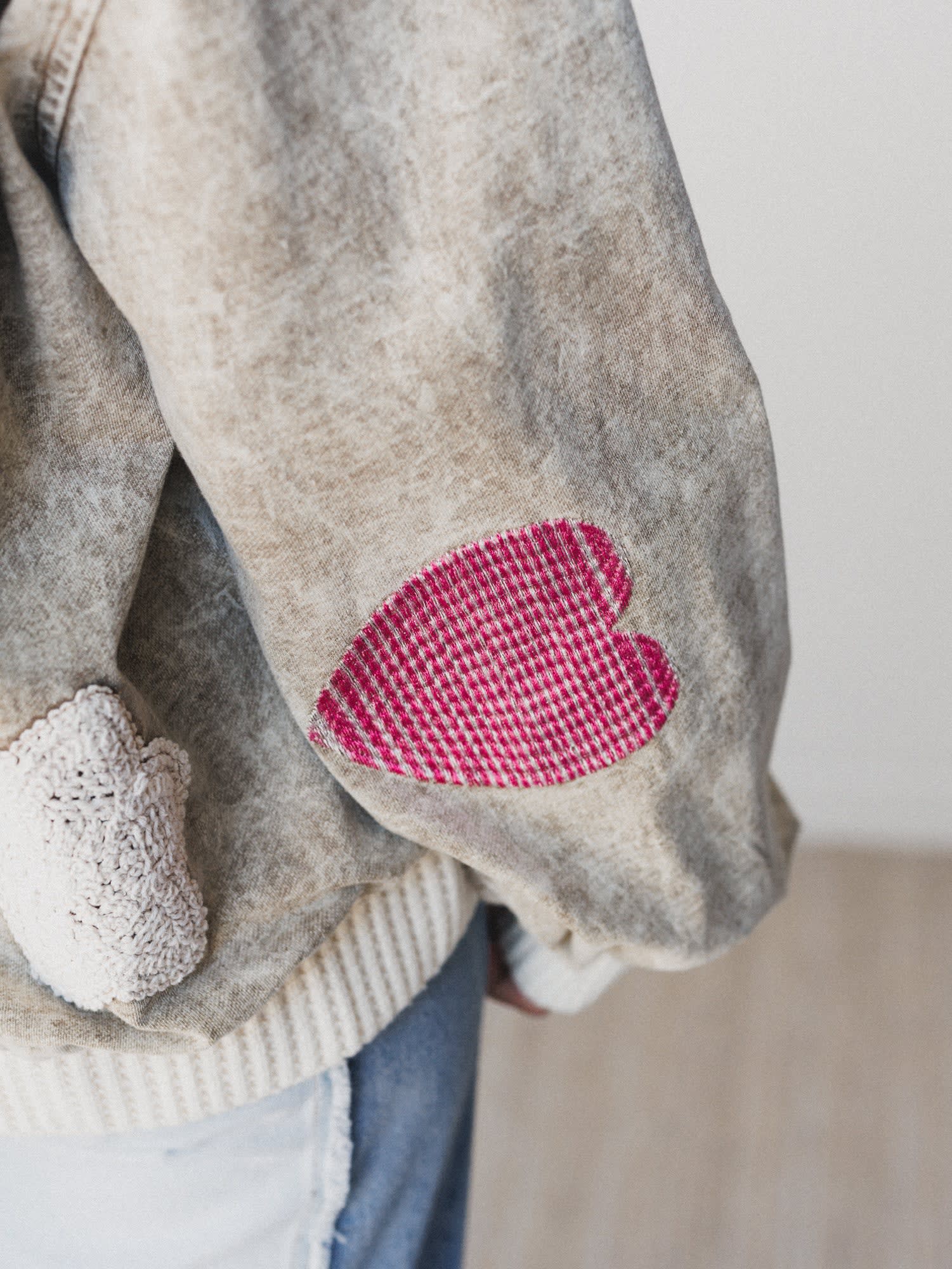 - Crochet lace patches add a sweet handmade touch