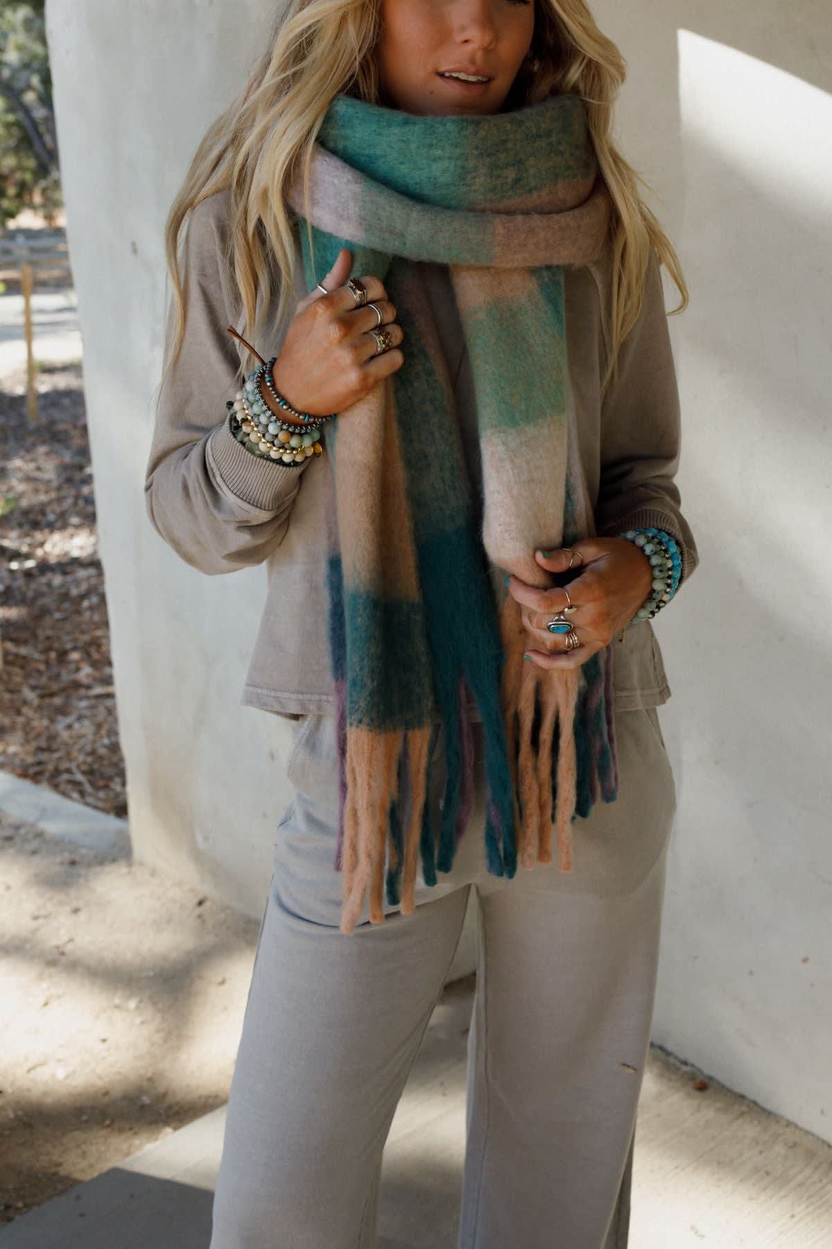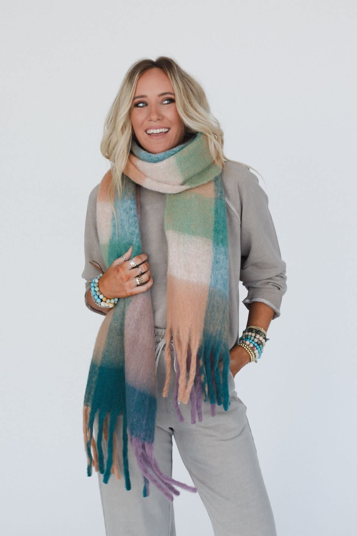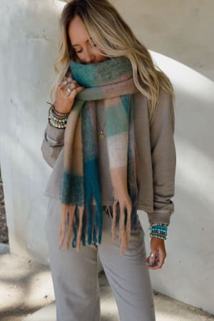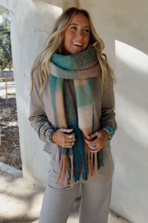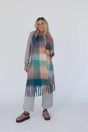 Wrap yourself up in the Everest Cozy Plaid Scarf—a perfect blend of colors and cute trim, making it an effortless essential for your cool-weather lineup!
