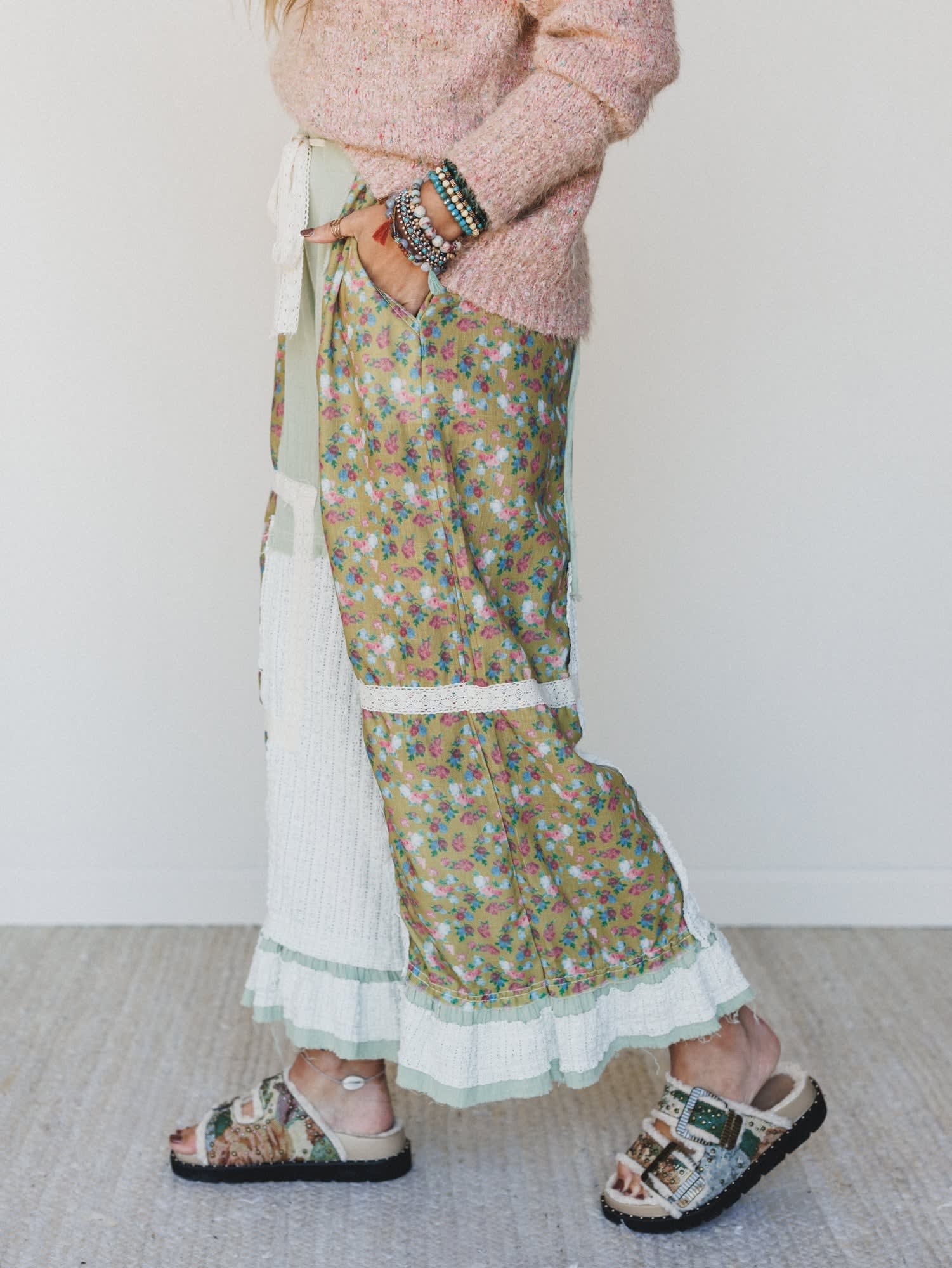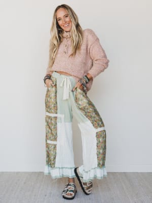 Whimsical patchwork meets all-day comfort in the Everyday All Day Pants. With floral prints, crochet lace accents, and a flowy wide-leg fit, these dreamy pants are ready for everything from morning coffee runs to sunset strolls.