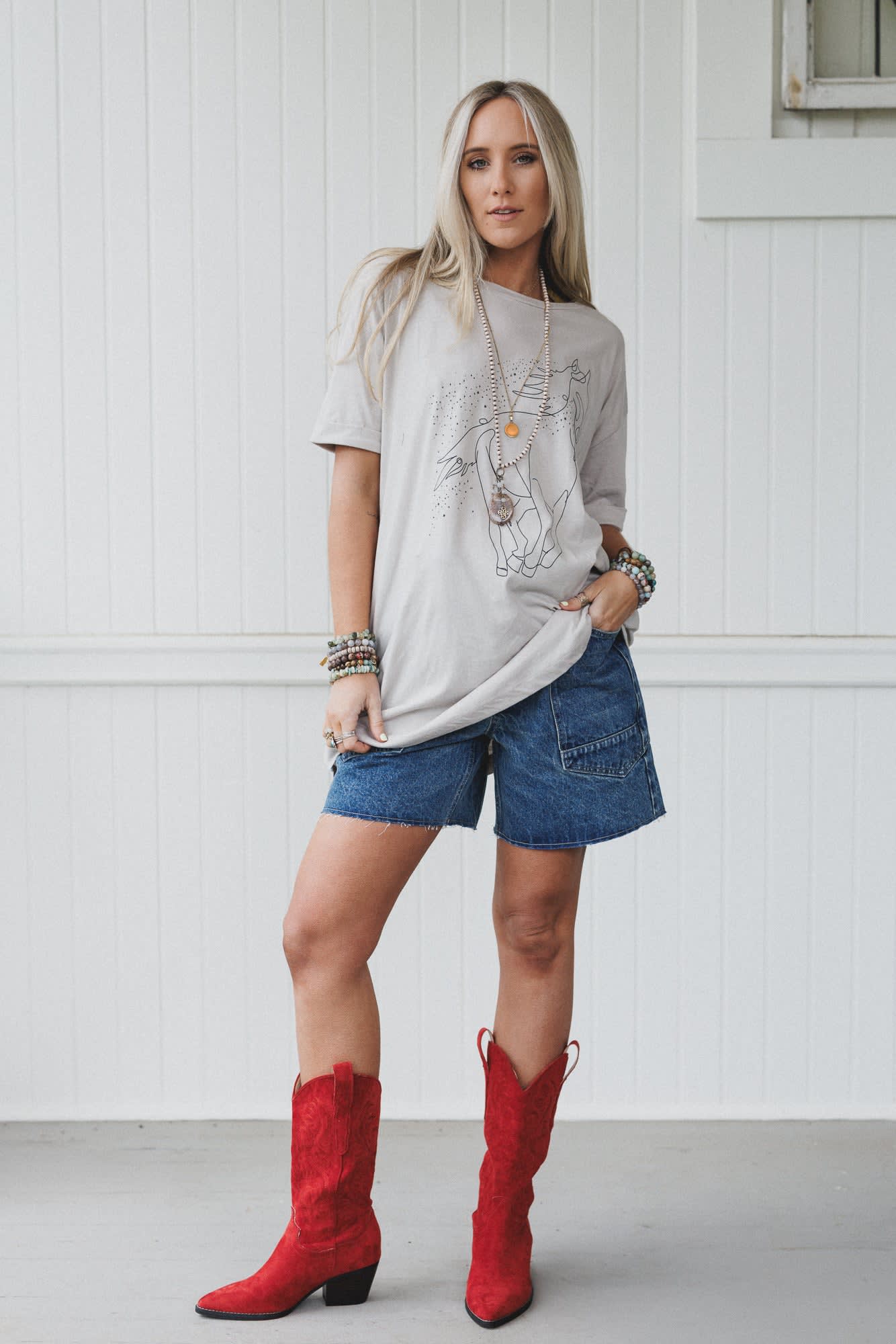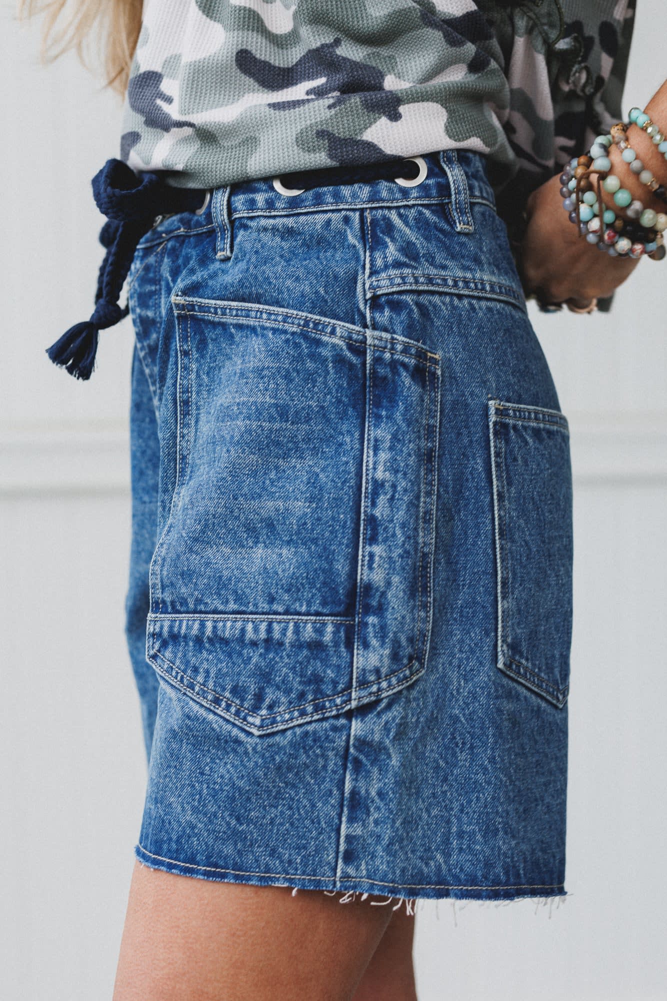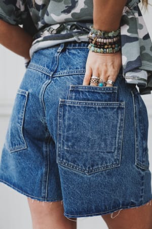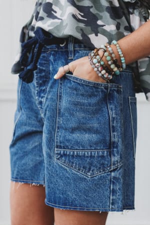 Add a ribbed tank top and duster to these denim shorts and you have a simple festival-ready look.