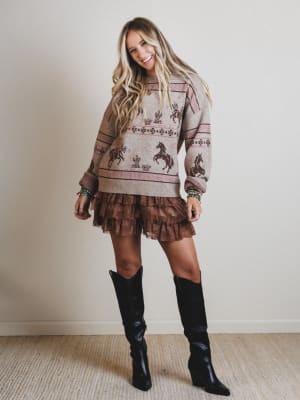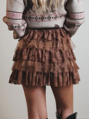 Whimsy meets western in the Fairy Parade Tiered Ruffle Mini Skirt. With layers of lace and mesh that flutter with every step, this skirt is made for dancing, date nights, and dreamy days when you want to feel a little extra magical.