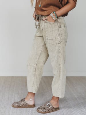 - Relaxed barrel leg cut with ankle-grazing length for modern boho appeal