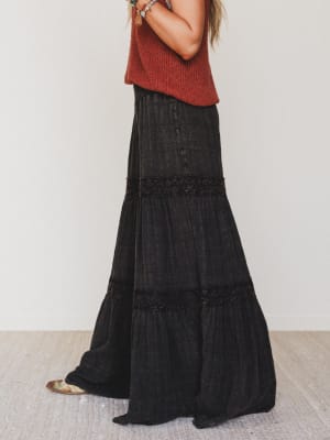 • Tiered silhouette with lace inset details adds a romantic boho vibe