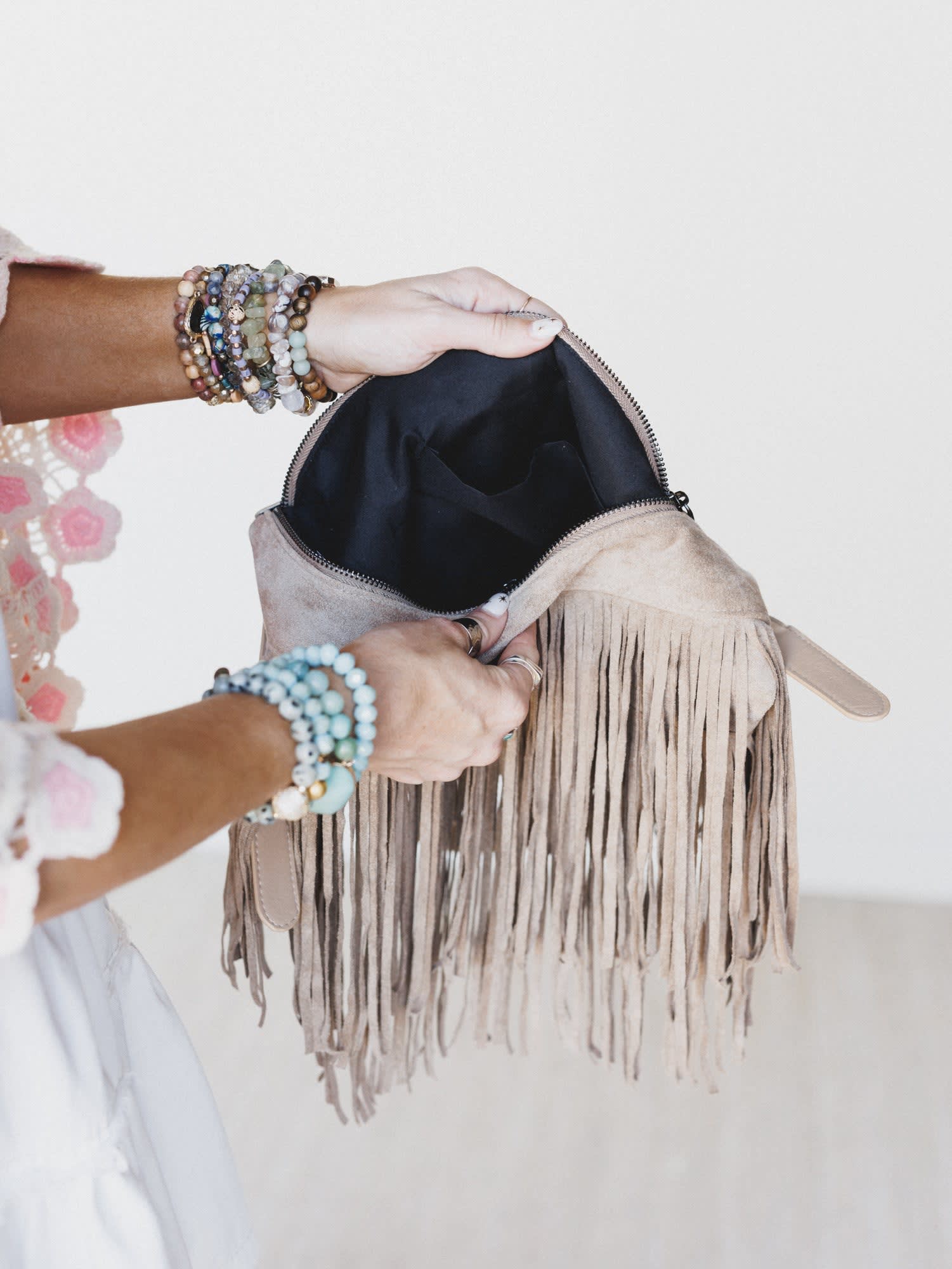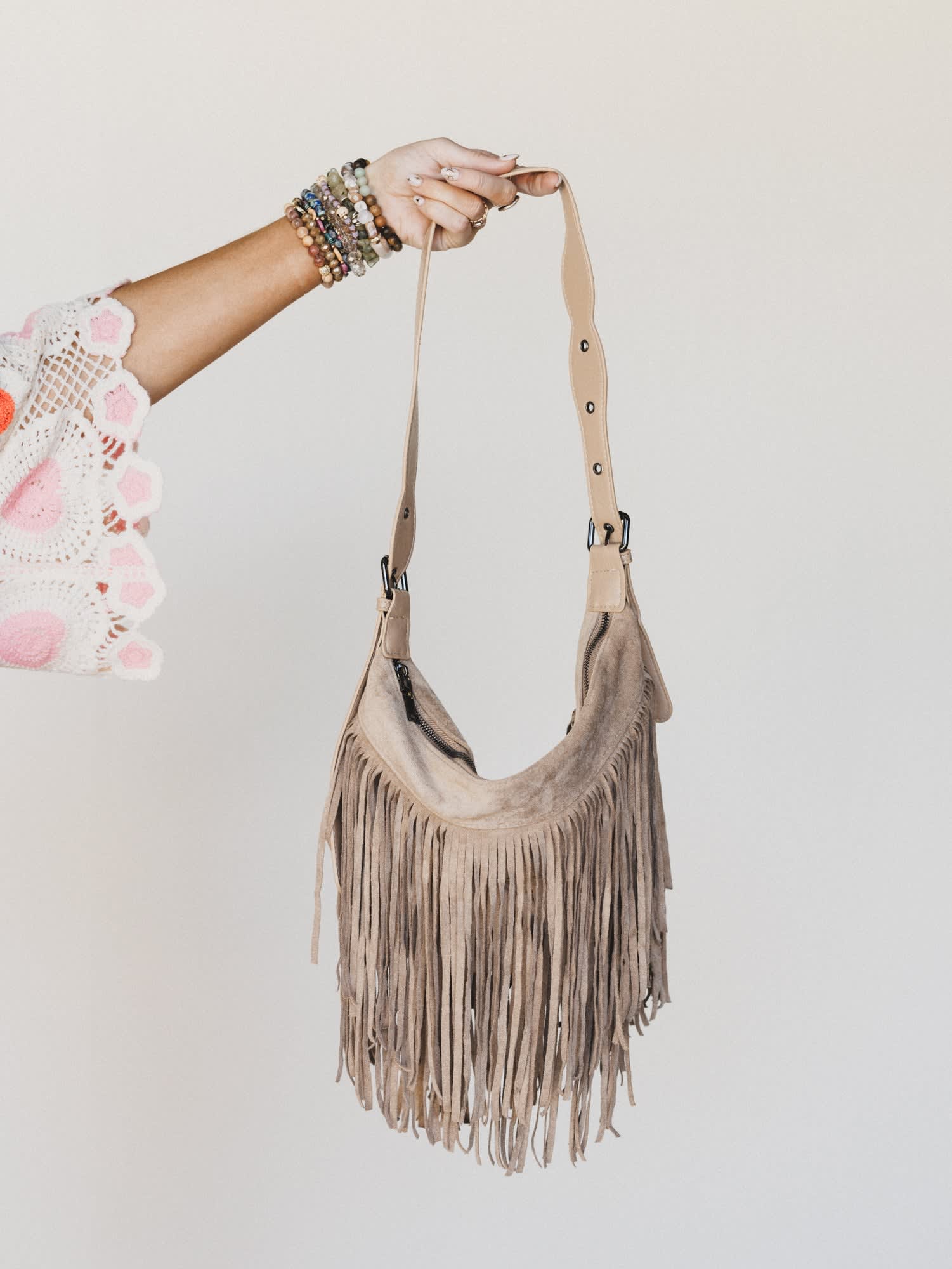 The boho bag that goes everywhere you do — this khaki tan suede fringe crossbody is the kind of festival outfit accessory or everyday carry that instantly elevates any look with zero effort.