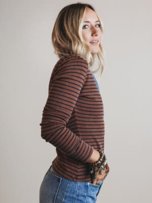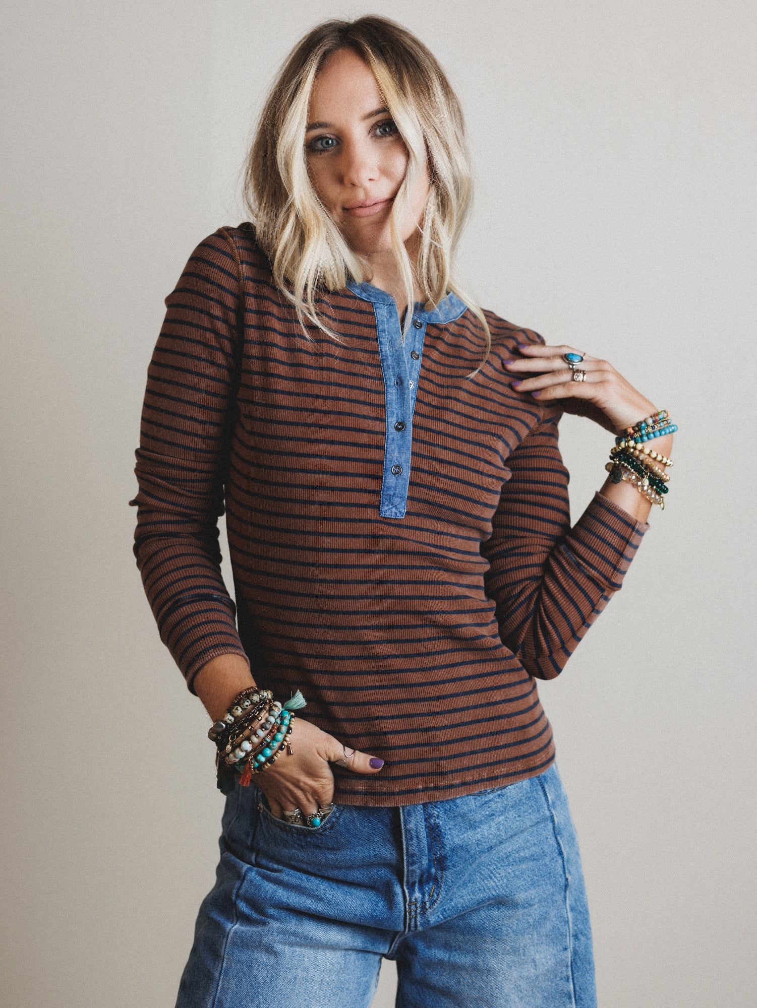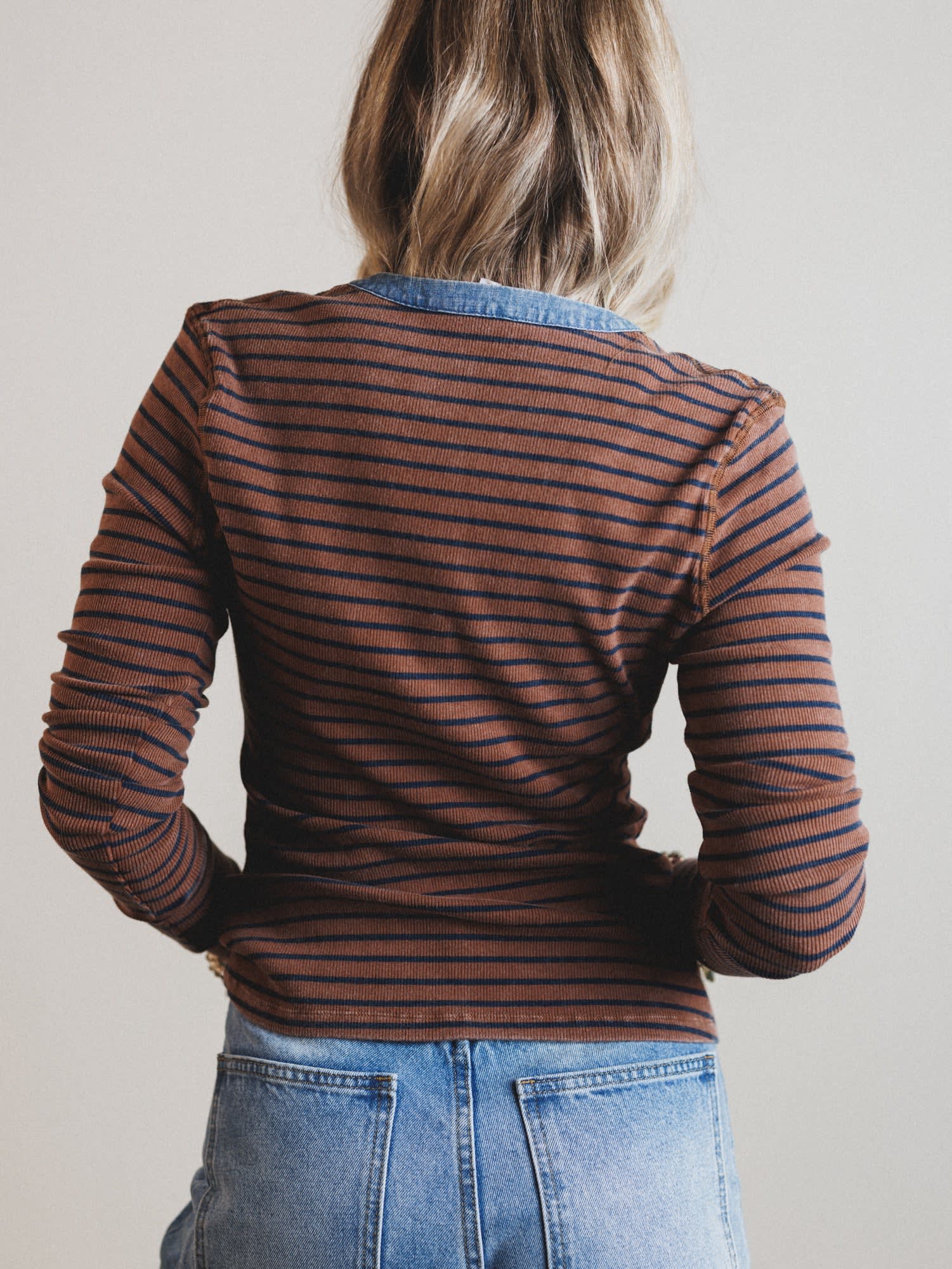 Take your casual days up a notch with the Fieldtrip Stripe Top—where cozy meets cool-girl charm. With its retro stripe pattern and contrasting chambray collar, this top adds an unexpected twist to your favorite basics.
