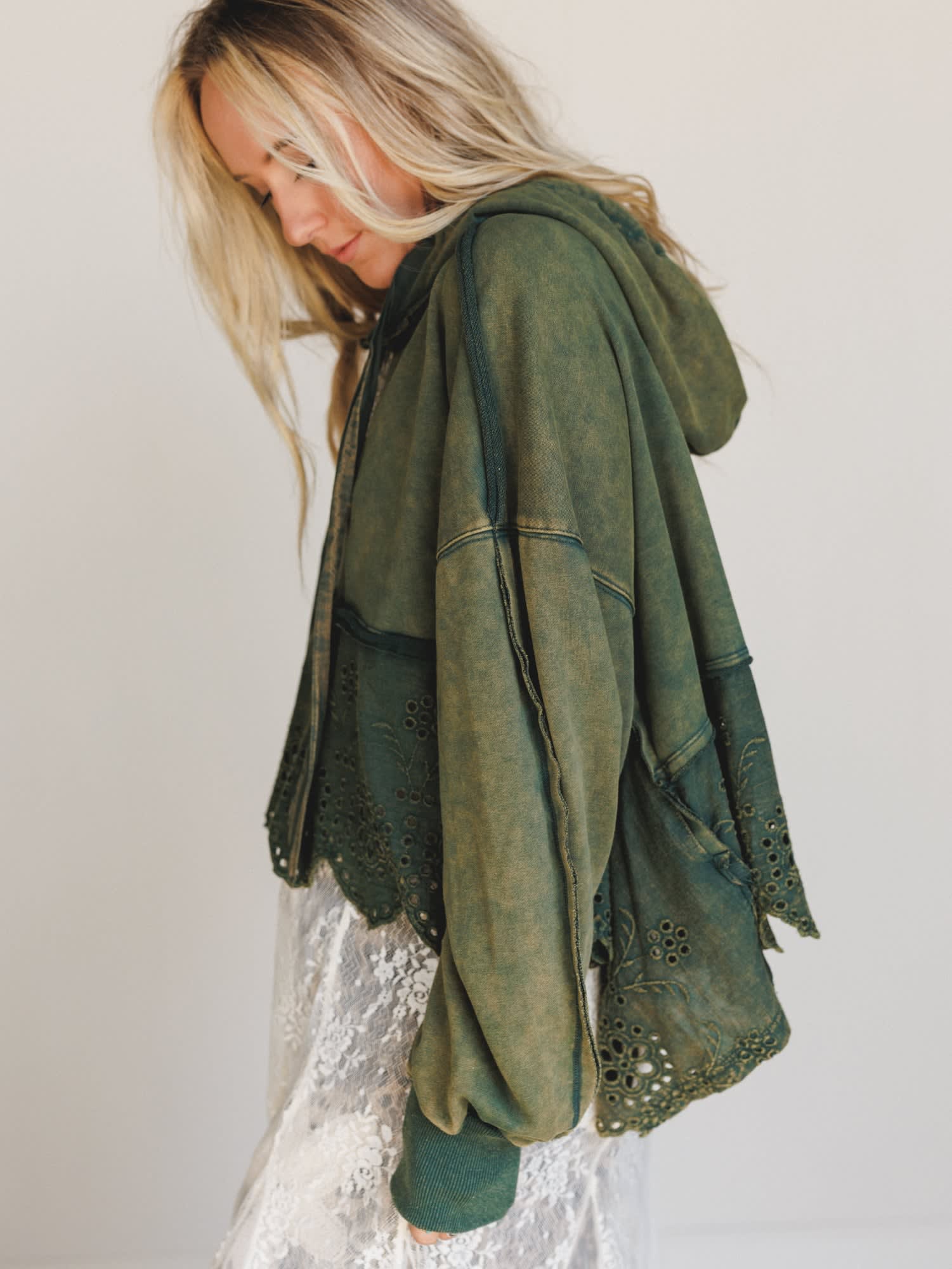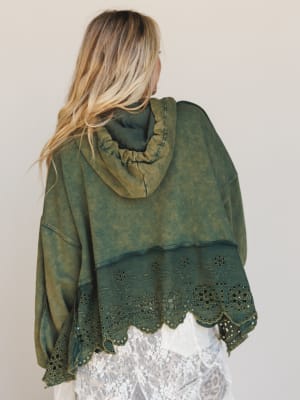 • Cropped hoodie with eyelet trim for a cozy-meets-feminine edge