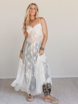 • Slip dress with a lacey overlay that adds a touch of romance to your rotation