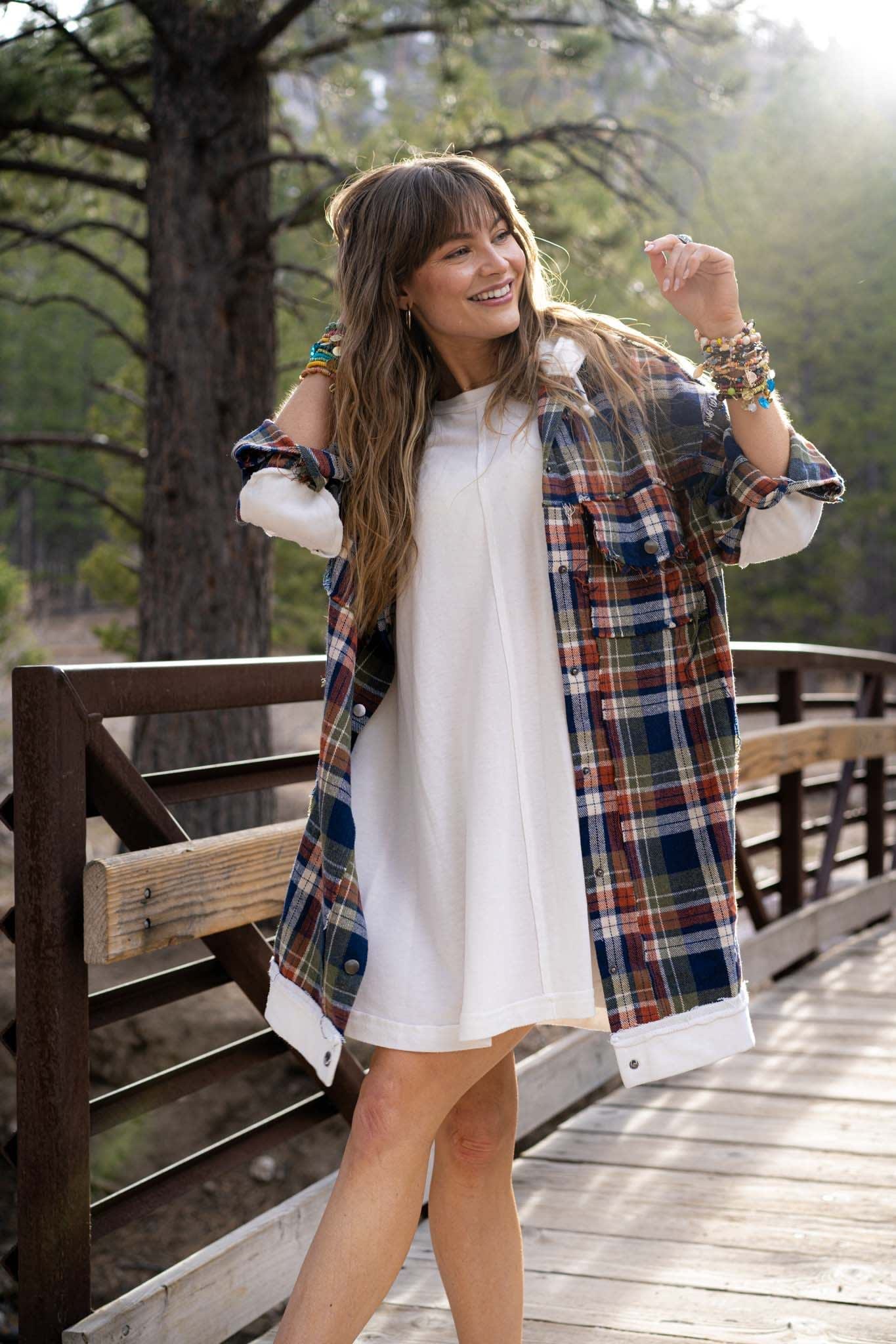 Who doesn't need a new flannel every Fall season- this oversized Flannel Layers Jacket is the perfect addition to your collection. It features a fun plaid pattern, cute raw stitching and a hood.
