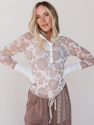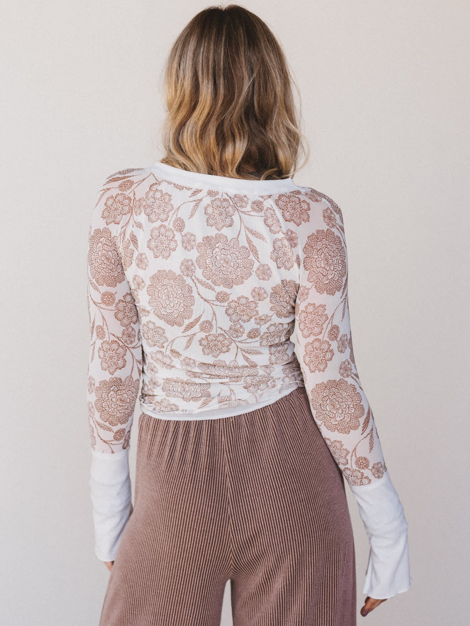 The Floral Affection Mesh Long Sleeve Top is a soft and romantic layer with just the right amount of edge. Made to peek out from under chunky cardigans or shine on its own, this floral beauty blends vintage-inspired charm with modern femme vibes.